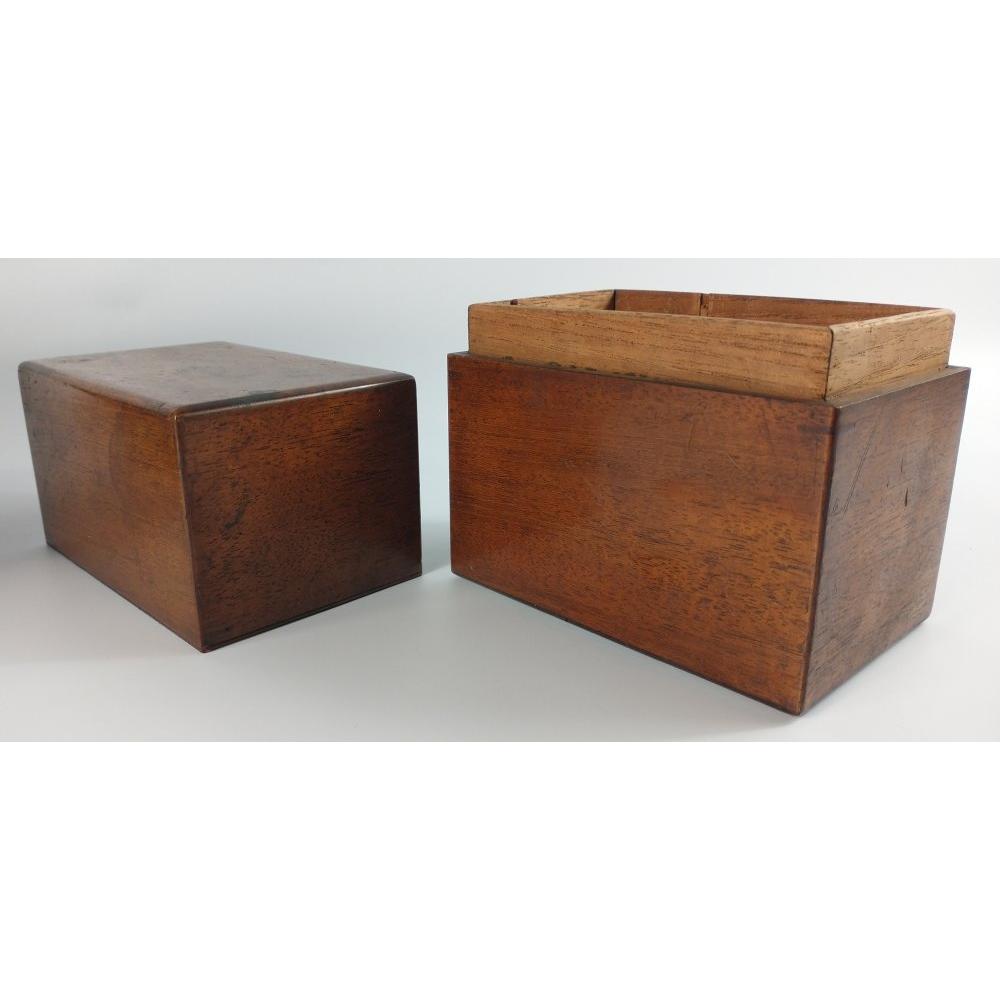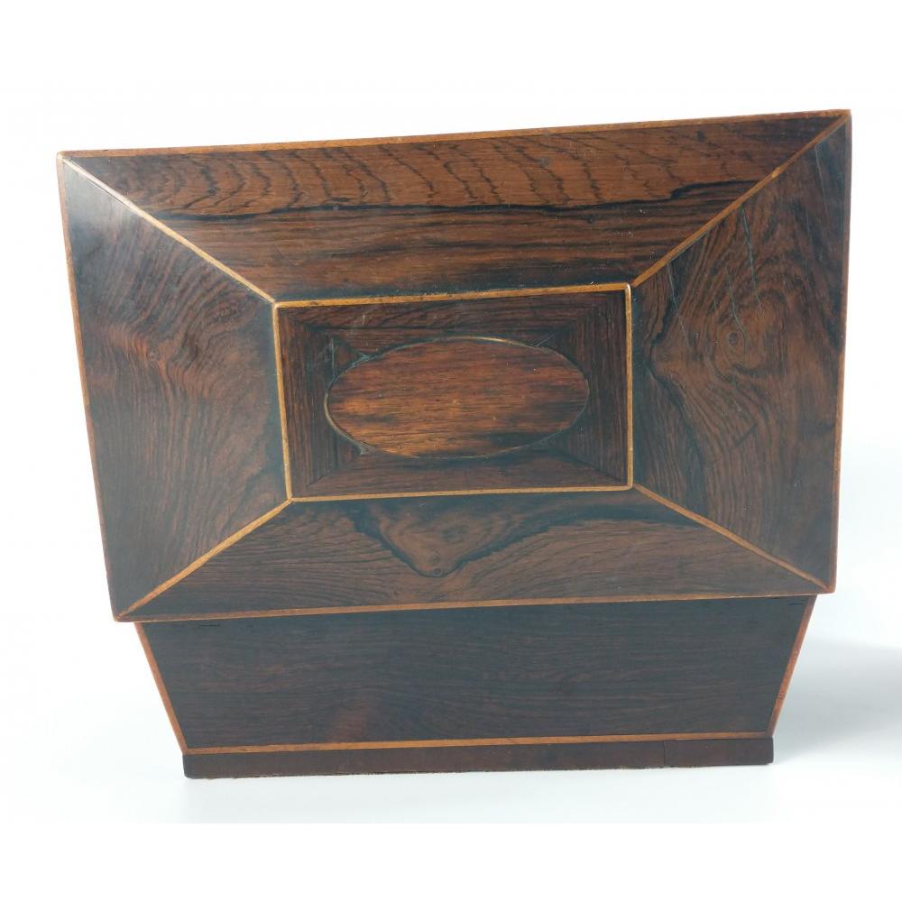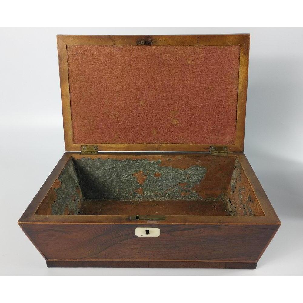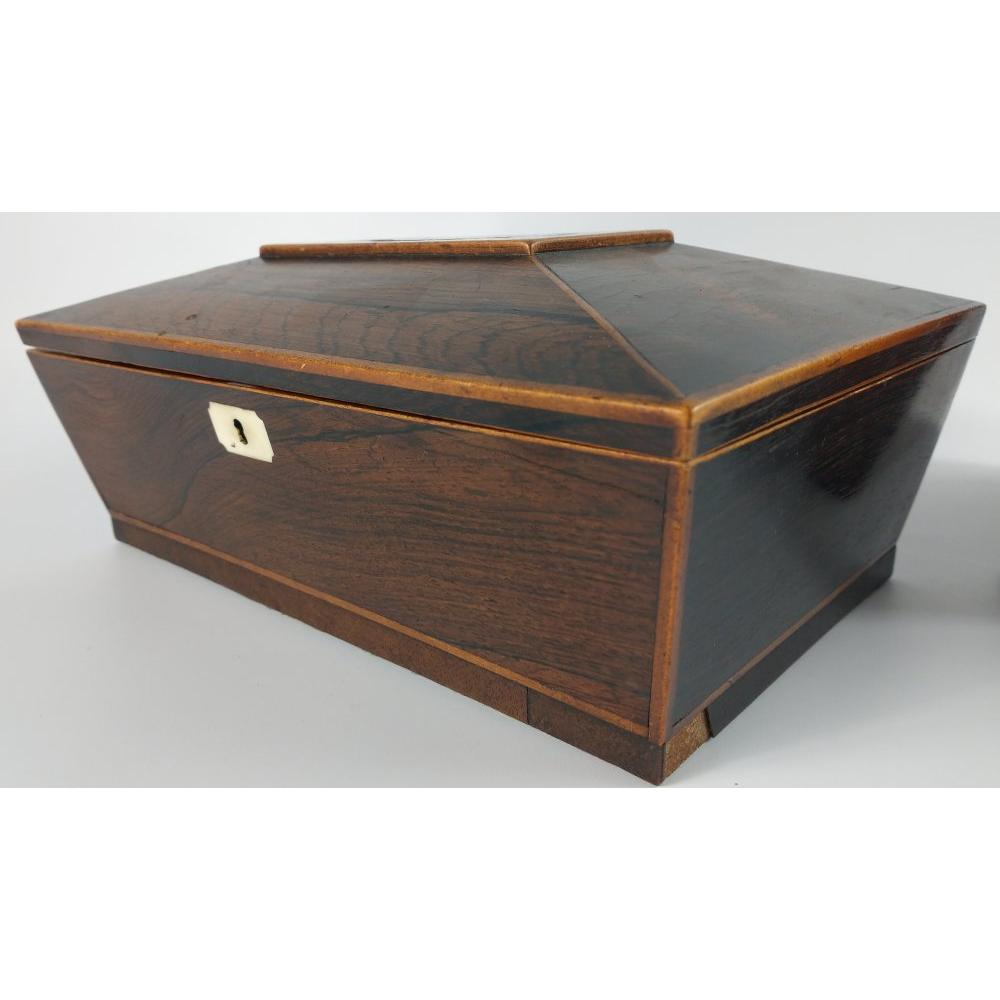 A Victorian Rosewood casket style lidded box, of the highest quality, L 28cm x D12cm H 11cm approx, also with a small vintage mahogany sleeve box H 15cm x D 8cm x L 13cm Approx 2 pieces