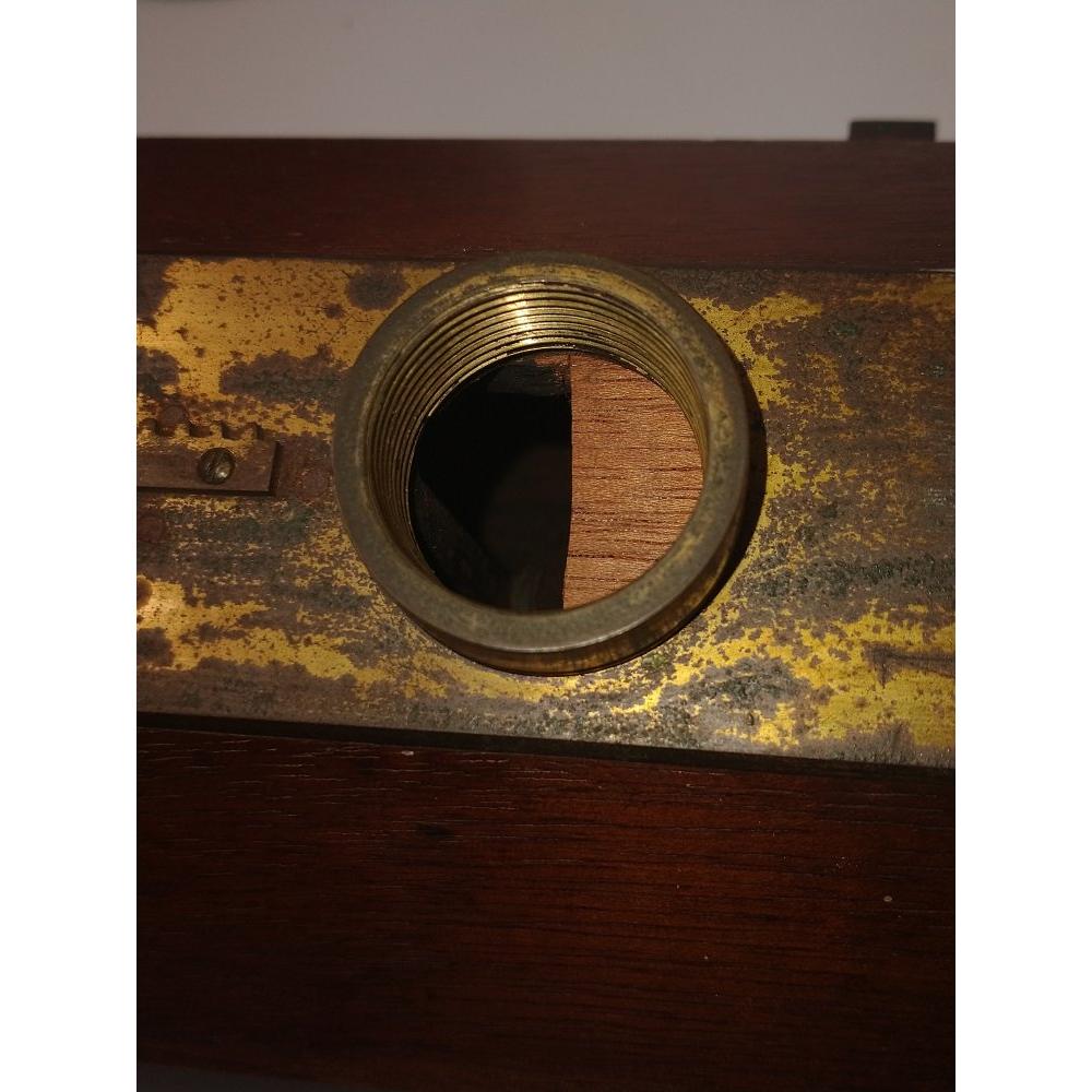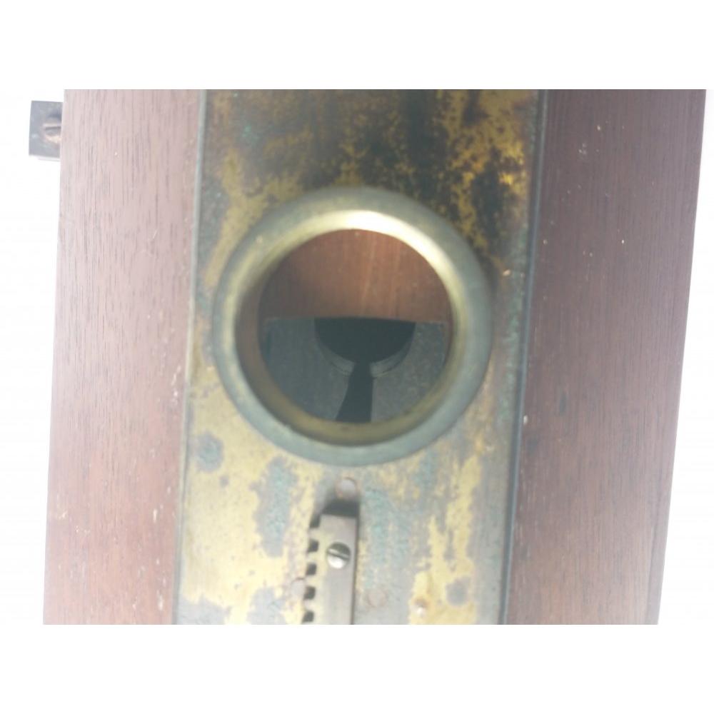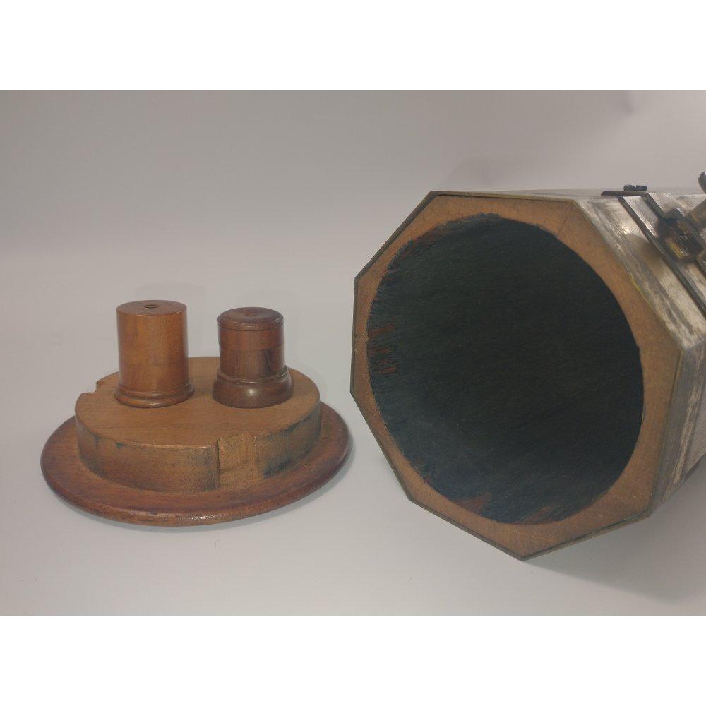 A VINTAGE mahogany Octagonal crude telescope? with a mirror at the base inside, with a brass adjustable light-inlet, and brass fittings approx 97cm length L: 97cm approx D: 11cm approx