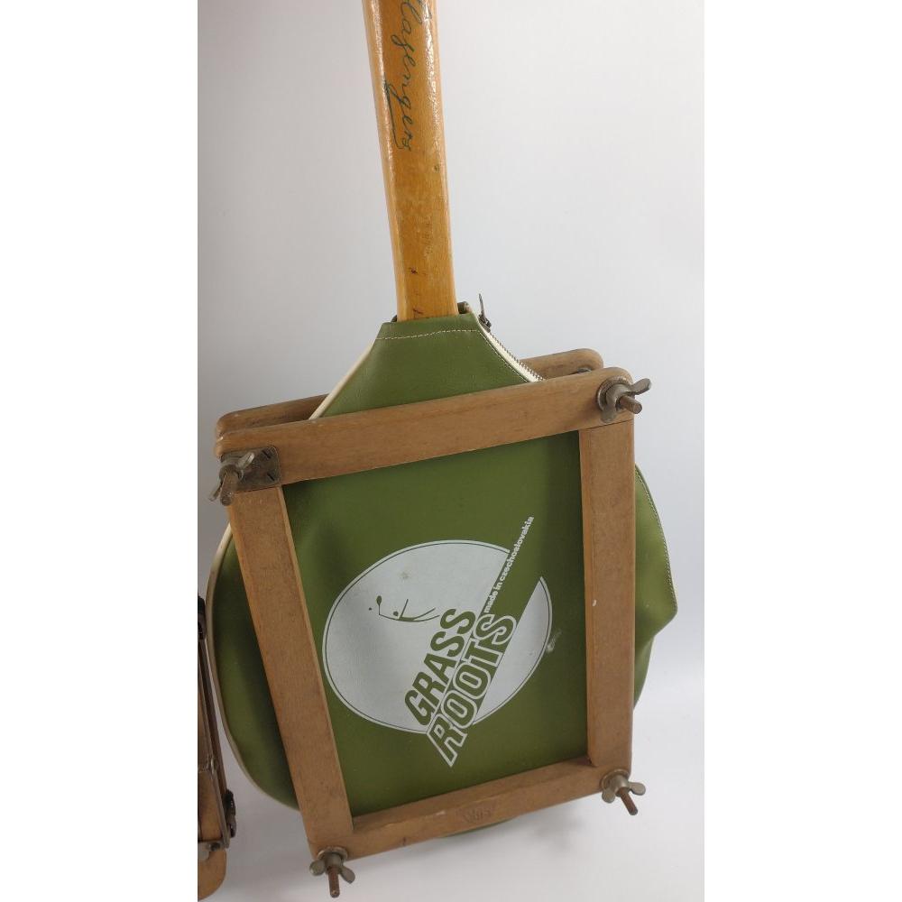 Three vintage rackets, 2 tennis rackets in presses and one - badminton - great for summer garden fun!Approx 3 pieces