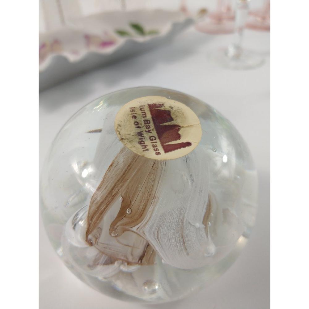A mixed box to include an ISLE OF WIGHT glass paperweight and also pheasant decorated small glasses etc