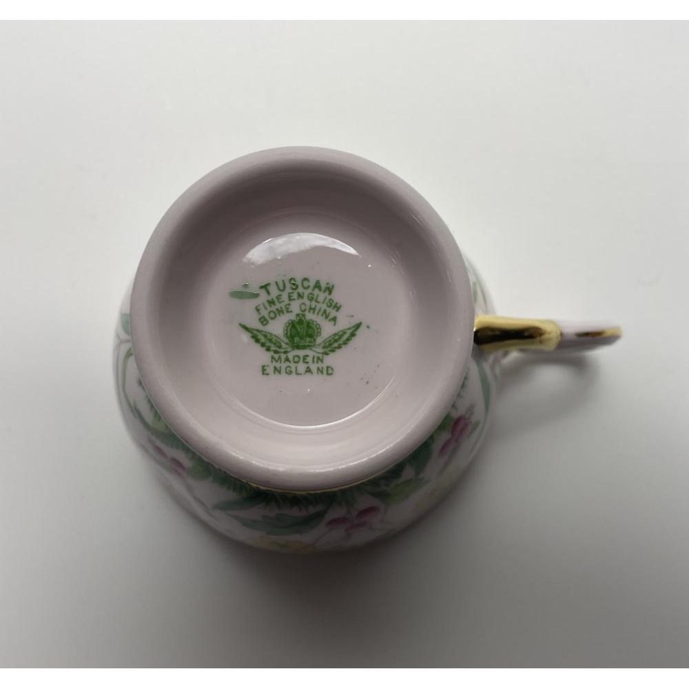 A VINTAGE TUSCAN fine none China pink based tea set 6 cups, saucers and side plates and milk and sugarApprox 20 pieces