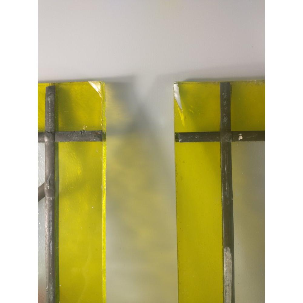 Pair of glass panels with red flowers and yellow borders, not stained but transfer