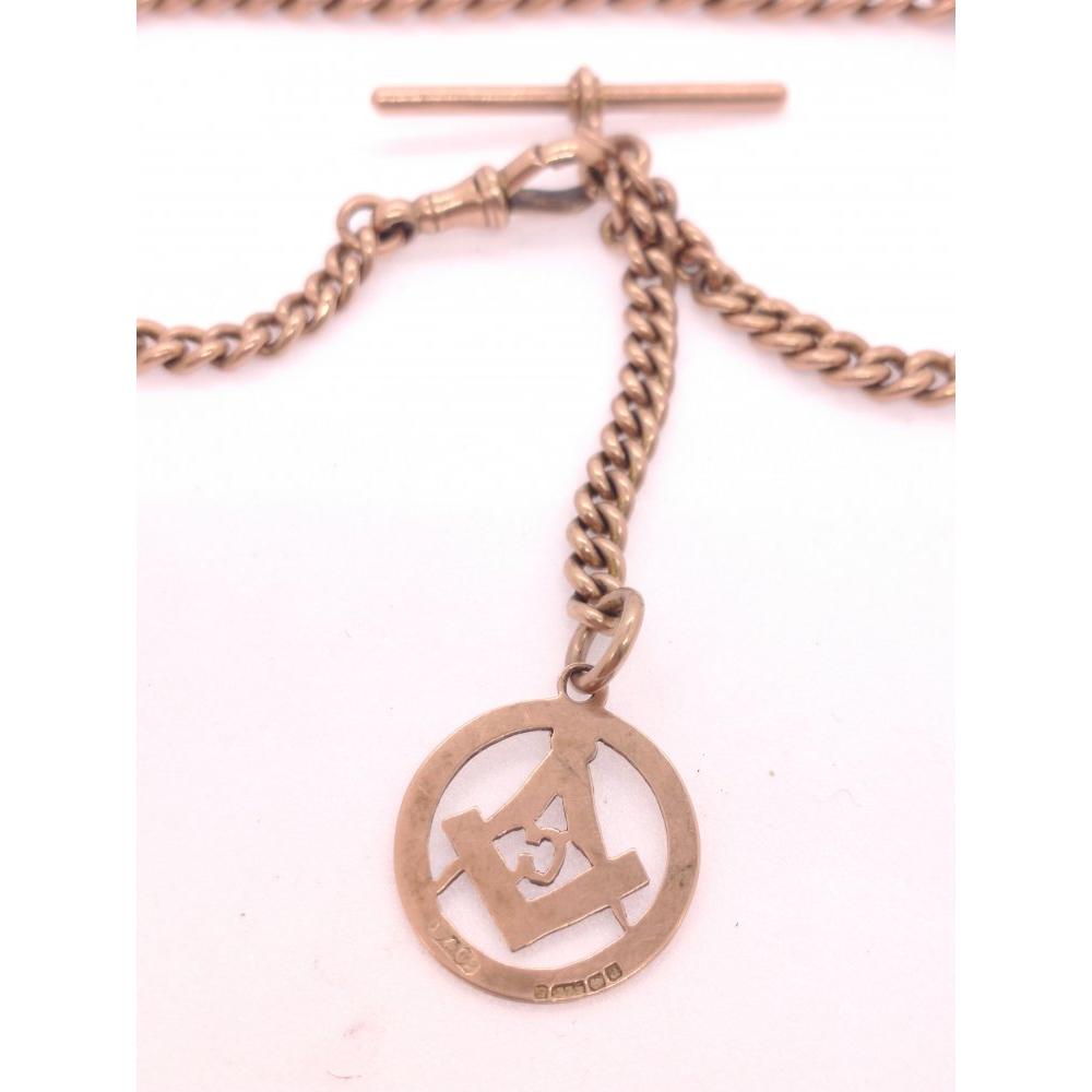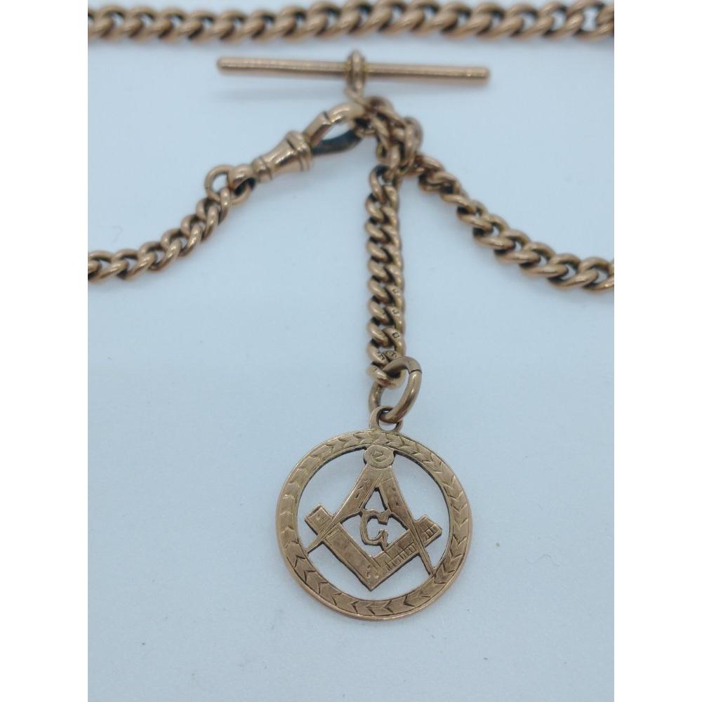MASONIC INTEREST SOLID GOLD Victorian watch chain 375 stamped Birmingham Hallmark on the fob bar, also 375 stamped on the attached chain clip and also 375 on the Masonic fob emblem