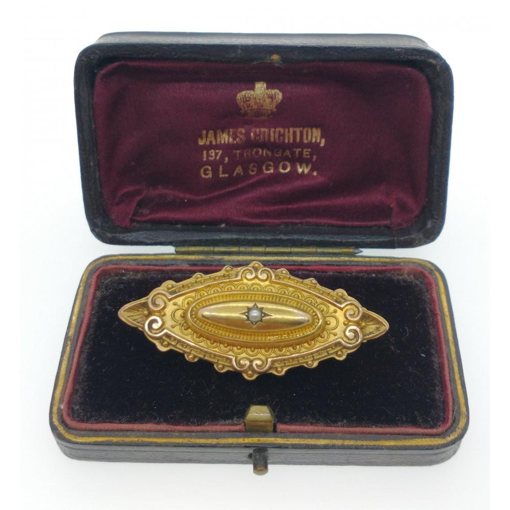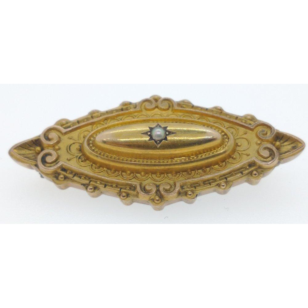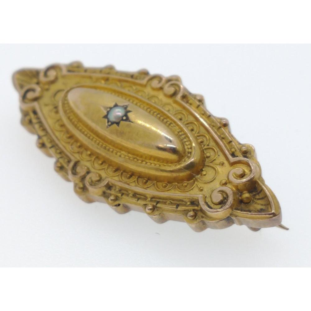 Victorian highly decorative yellow metal mourning brooch with seed pearl inset 5.2gGross weight approx 5.2g