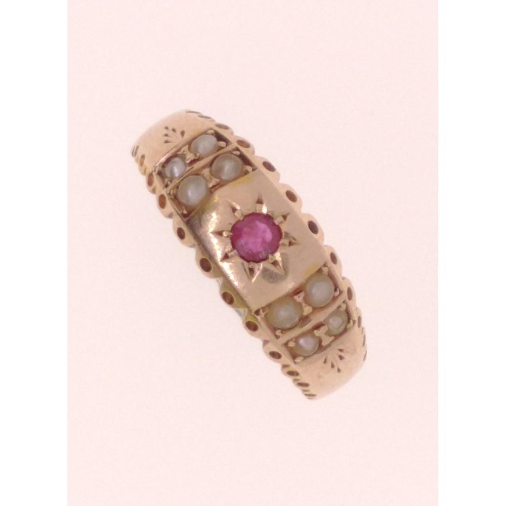 375 stamped and Hallmarked yellow gold wedding band size N 1.8g, and also a 15ct 625 stamped ladies dress ring with a garnet and seed pearls inset size M weight gross 2.6gApprox 2 pieces