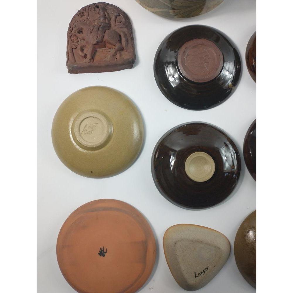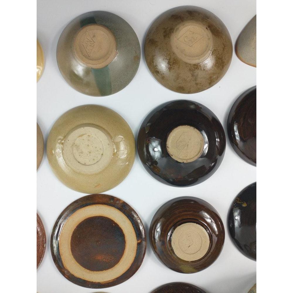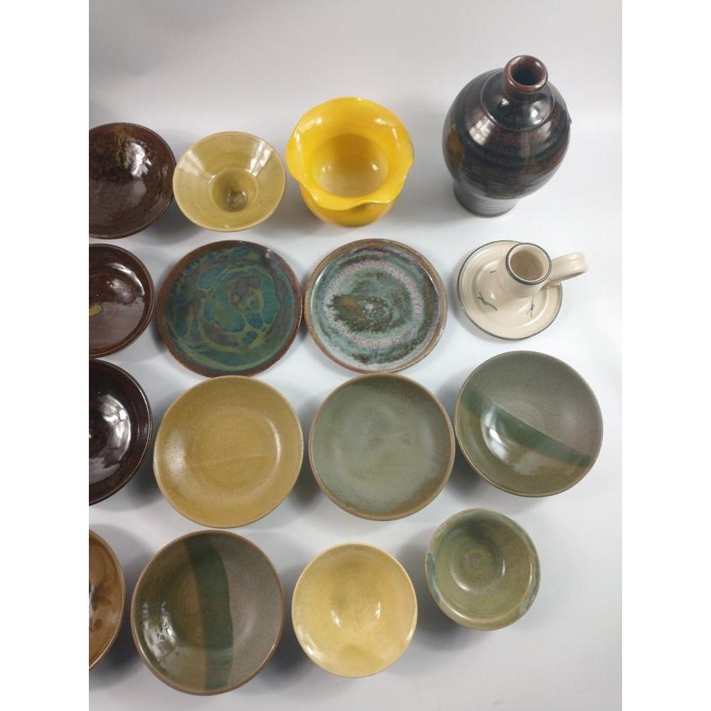 Large collection of studio pottery to include some SCOTTISH stoneware casserole dish, various designs of finger bowls, plates, vase(H: 18cm approx), candle holder etcApprox 23 pieces