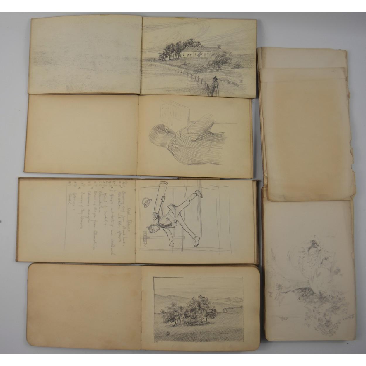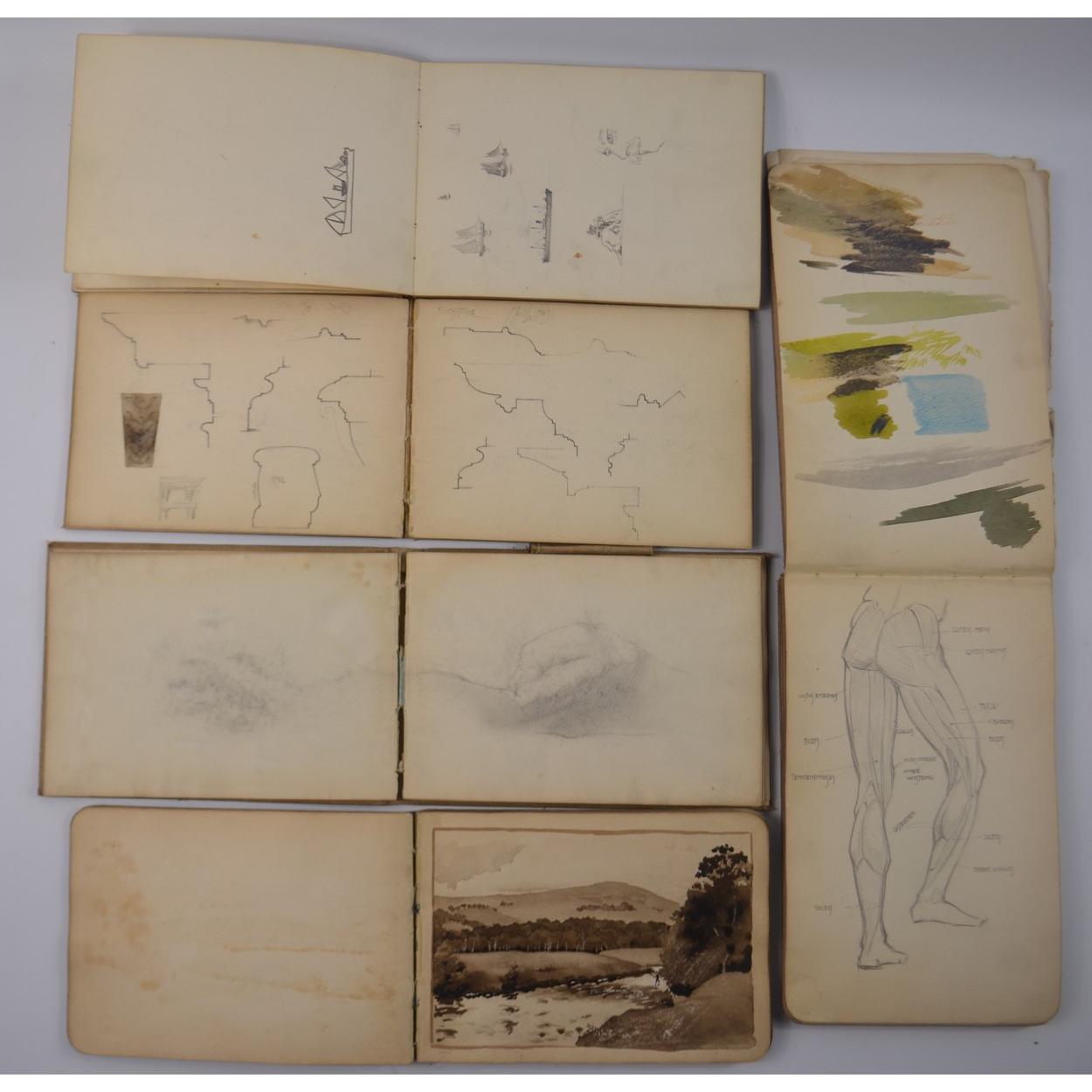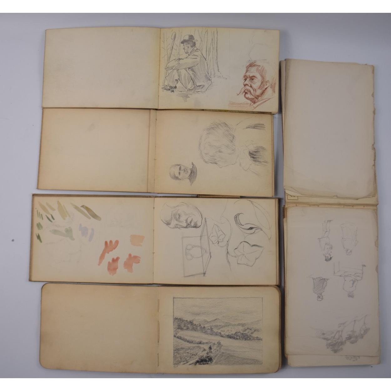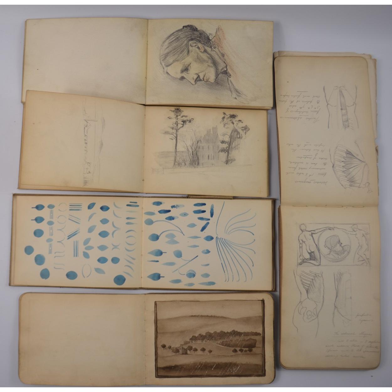 LOCAL INTEREST Six c1930's sketch books by an amateur artist depicting scenes such as scenes from the Scottish Borders, human anatomy, portraits, country houses, cottage scenes, some watercolour scenes, architecture etc etc