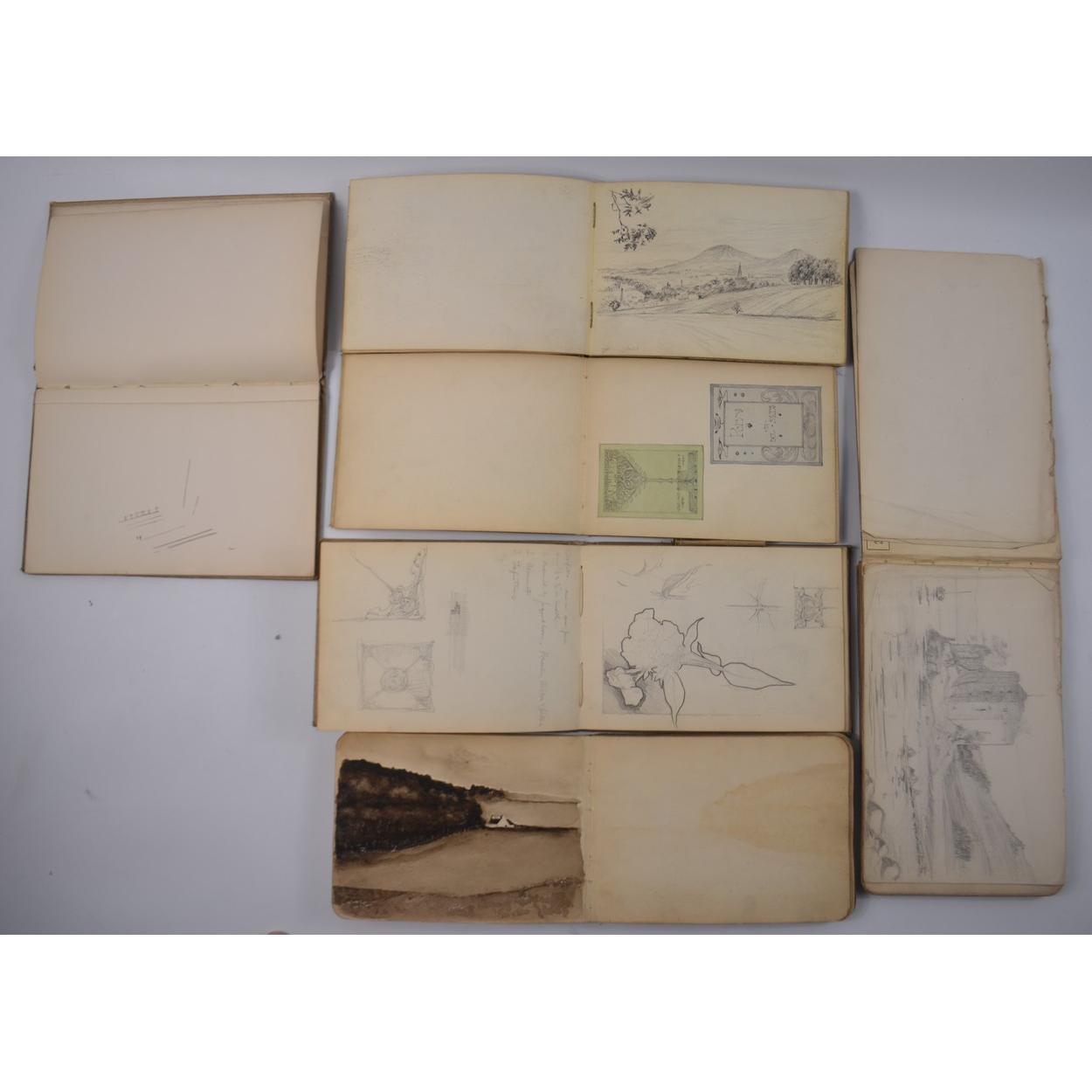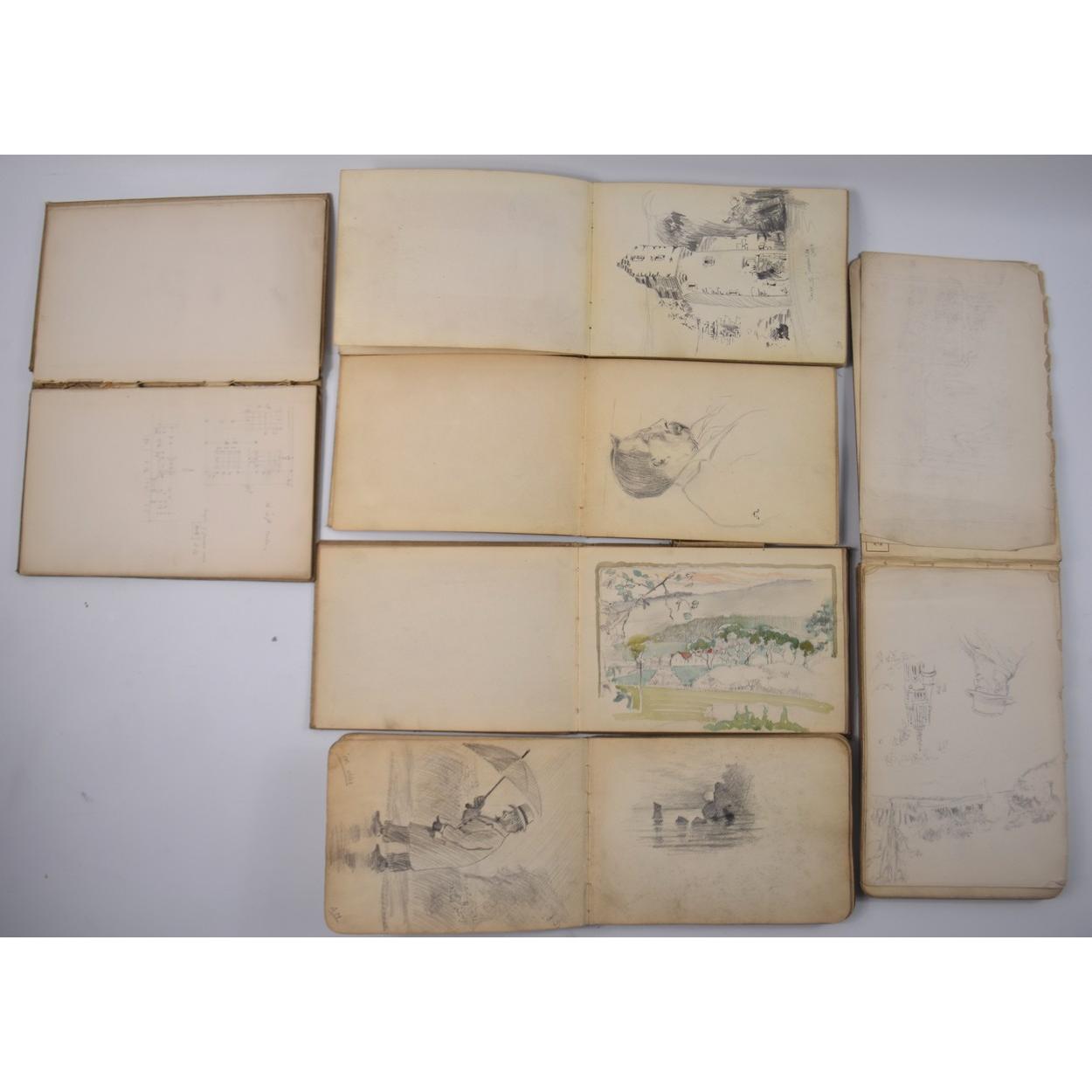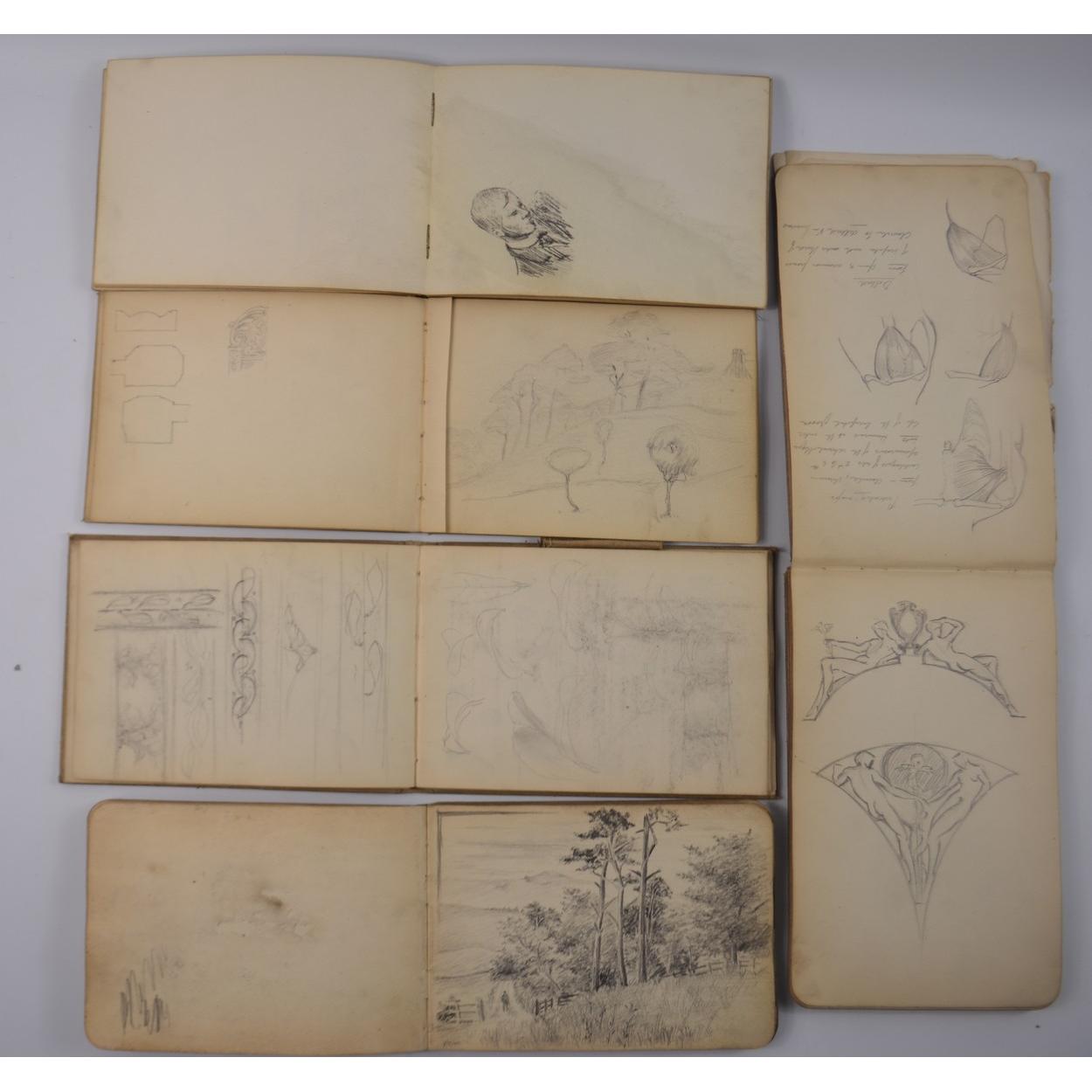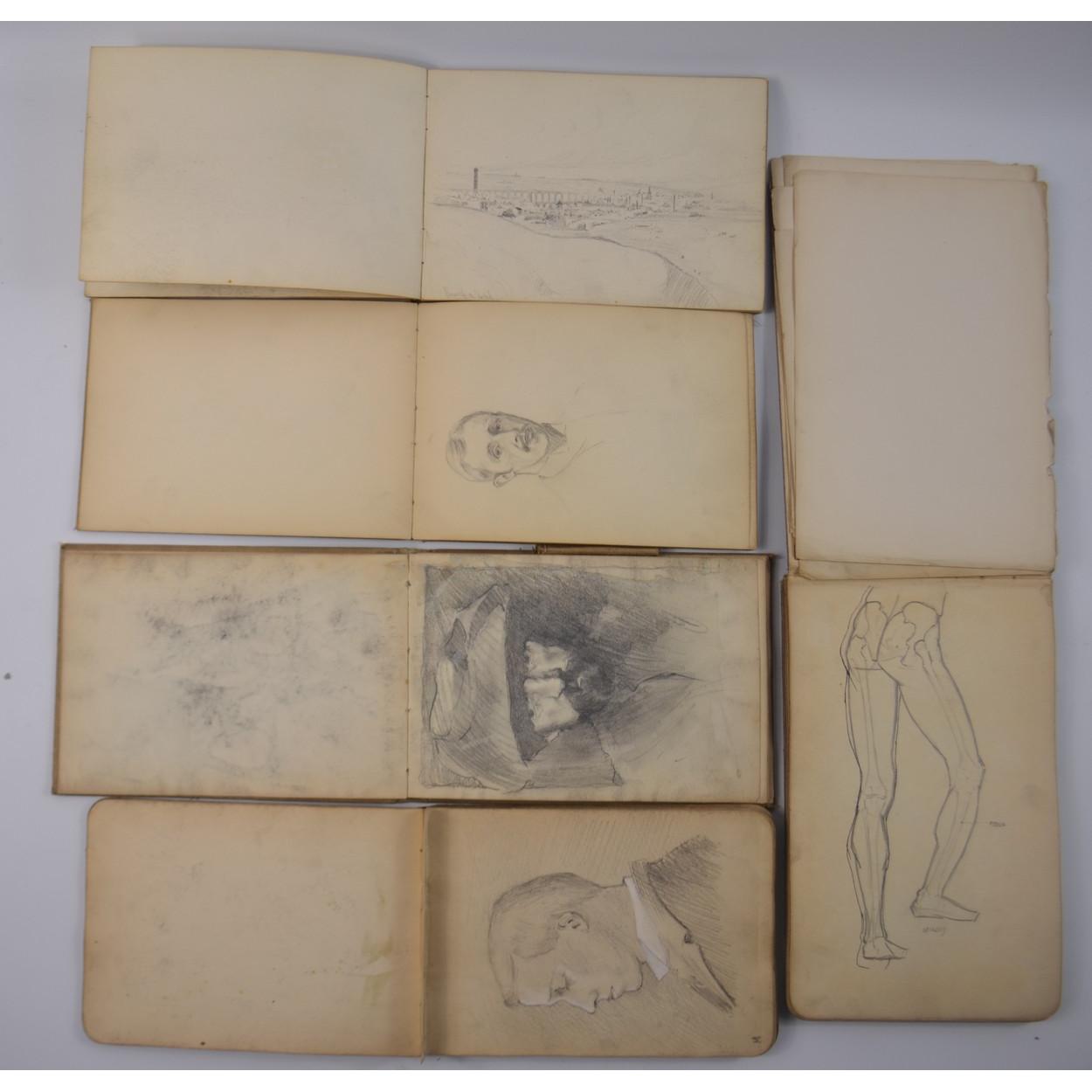 LOCAL INTEREST Six c1930's sketch books by an amateur artist depicting scenes such as scenes from the Scottish Borders, human anatomy, portraits, country houses, cottage scenes, some watercolour scenes, architecture etc etc