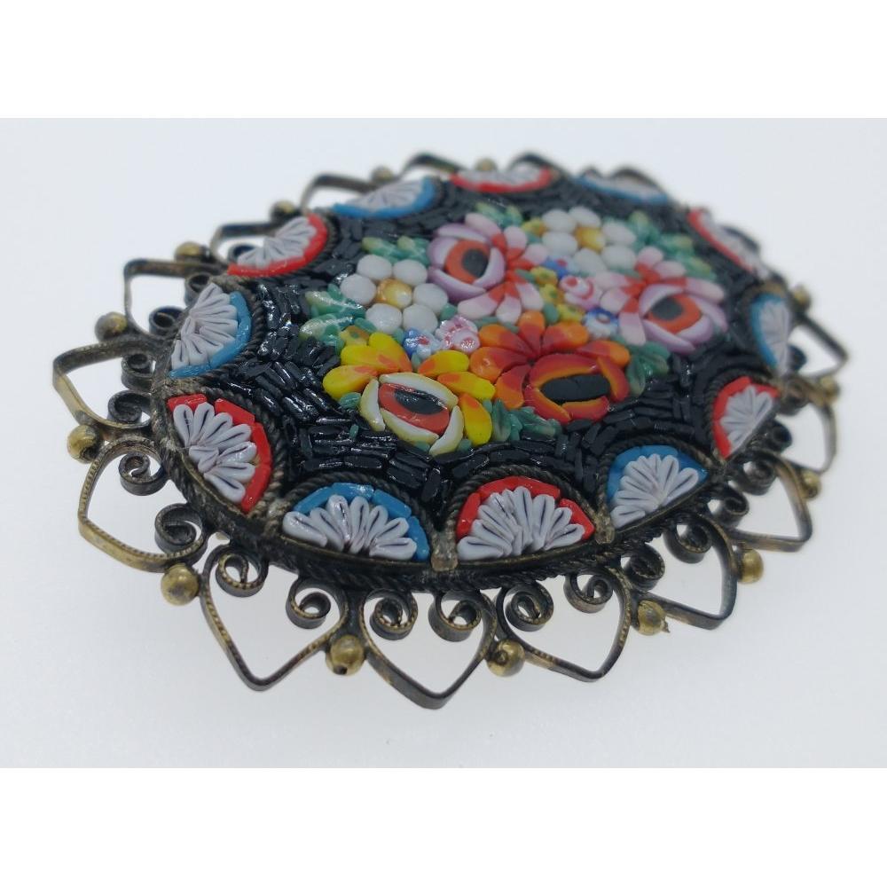 A VINTAGE ITALIAN micro-mosaic oval brooch with filigree border c1950's with 'ITALY' stamped verso - SO BEAUTIFUL!L: 5.5cm approx W: 4cm approx