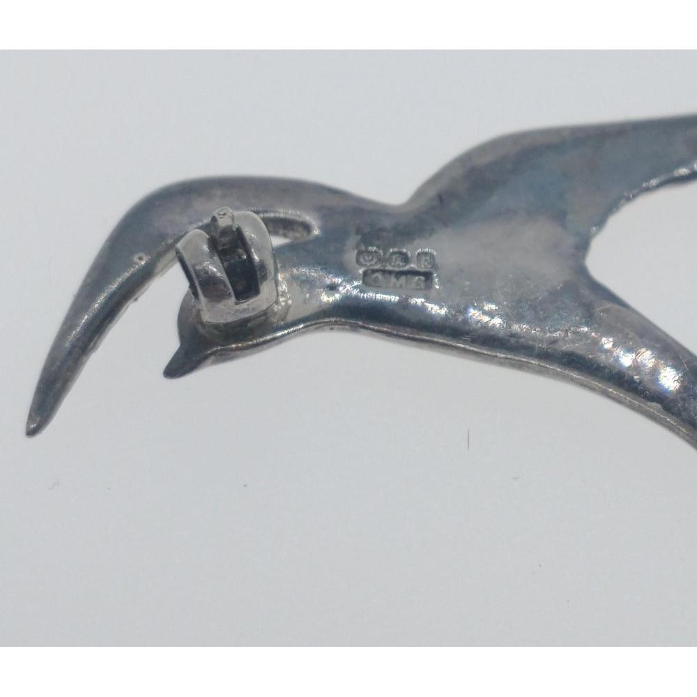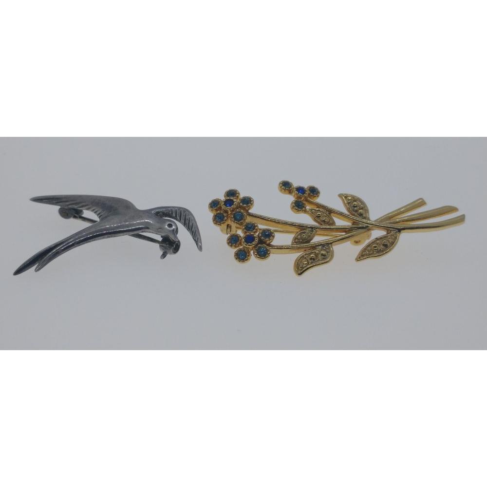 A VINTAGE Scottish swallow brooch with OMG (possibly OLA GORIE) maker mark 3.5cm high with also a Blue Rhinestone MOVITEX brooch c1980's in flower form 4.5cm highApprox 2 pieces