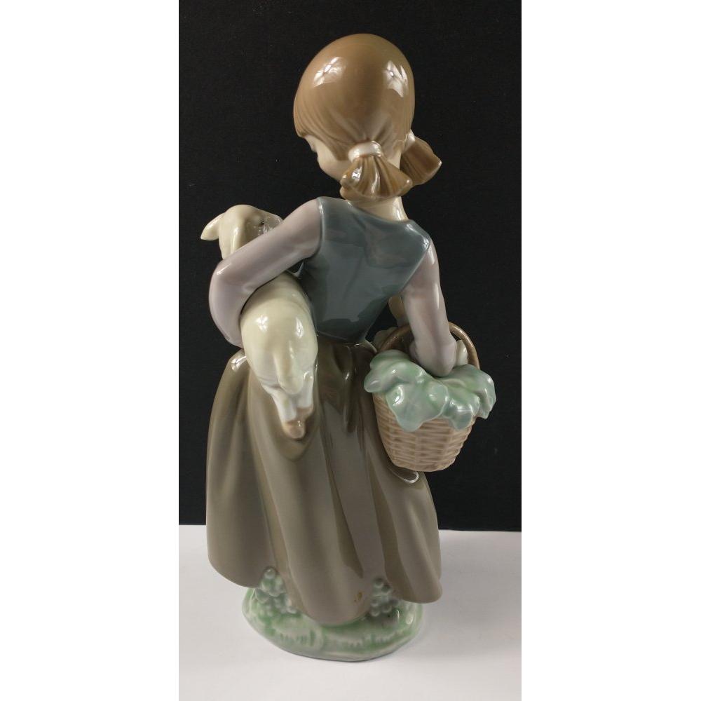 LLADRO figure of young girl carrying a lamb and flower basket. Stamped D-18 O to base