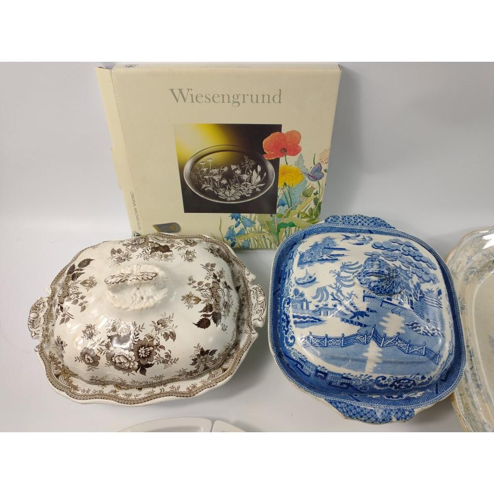 Mixed collection of china to include 1 cake plate (33cm) by WALTHER-GLAS, a set of 6 hors d'oeuvres dishes, 1 large ashet (40cm) BLUE ASIATIC PHEASANTS by MW & Co, 1 CTM BROWN ASIATIC PHEASANTS lidded vegetable dish (approx. 30cm), 1 TWIGGS square vegetable dish with lid (appro. 24cm), 1 TAMSWARE ashet (36cm. approx.)