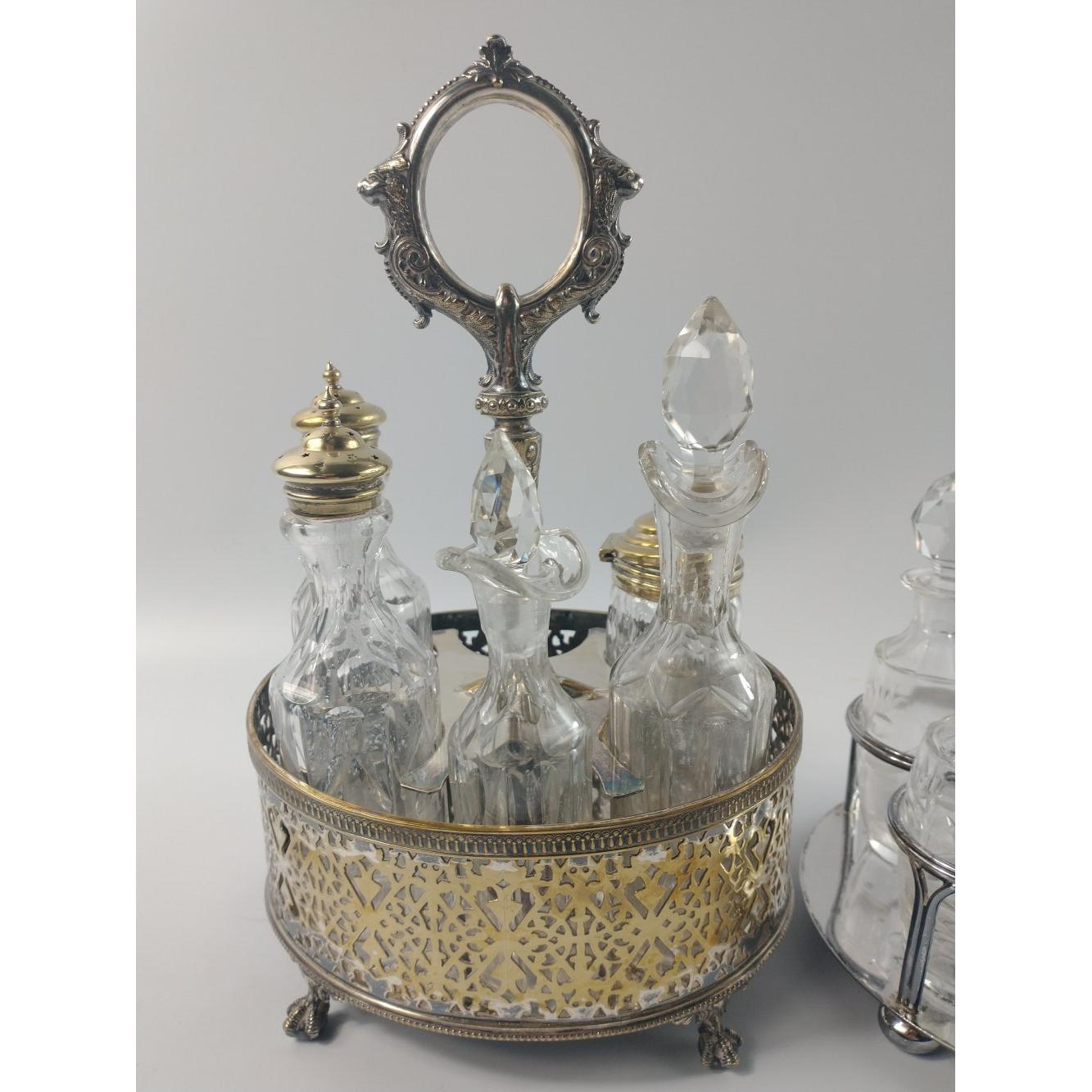 A good quality white metal condiment set four pieces height 25cm with also MAPPIN AND WEB condiment set with four pieces 23cm and a MAPPIN AND WEBB heavy based tall vase in white metal height 23.5cm with lastly a nice quality plated antique teapot with a pumpkin style handle height 18cm x length 28cm