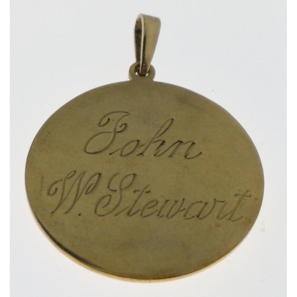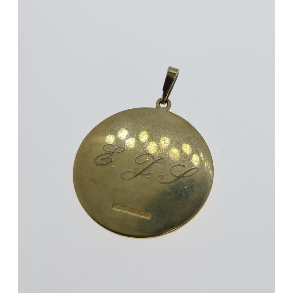 375 Hallmarked Birmingham yellow gold disc pendant with John W Stewart engraved on one side and JWS verso weight 4.75g. Approx 4.75g pieces