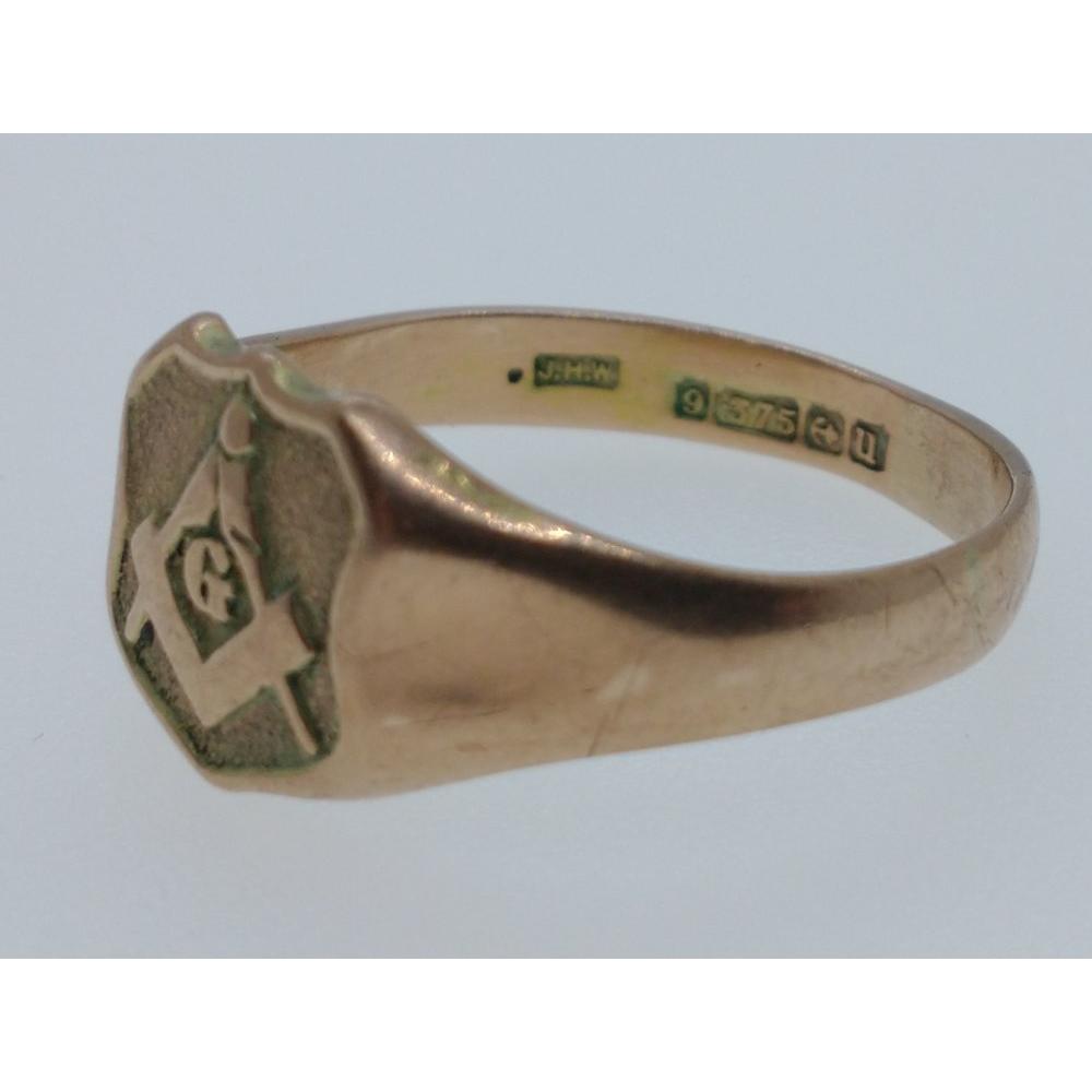 MASONIC INTEREST 375 stamped Birmingham Masonic yellow gold signet ring size Z+1 weight 5.2gGross weight approx 5.2g