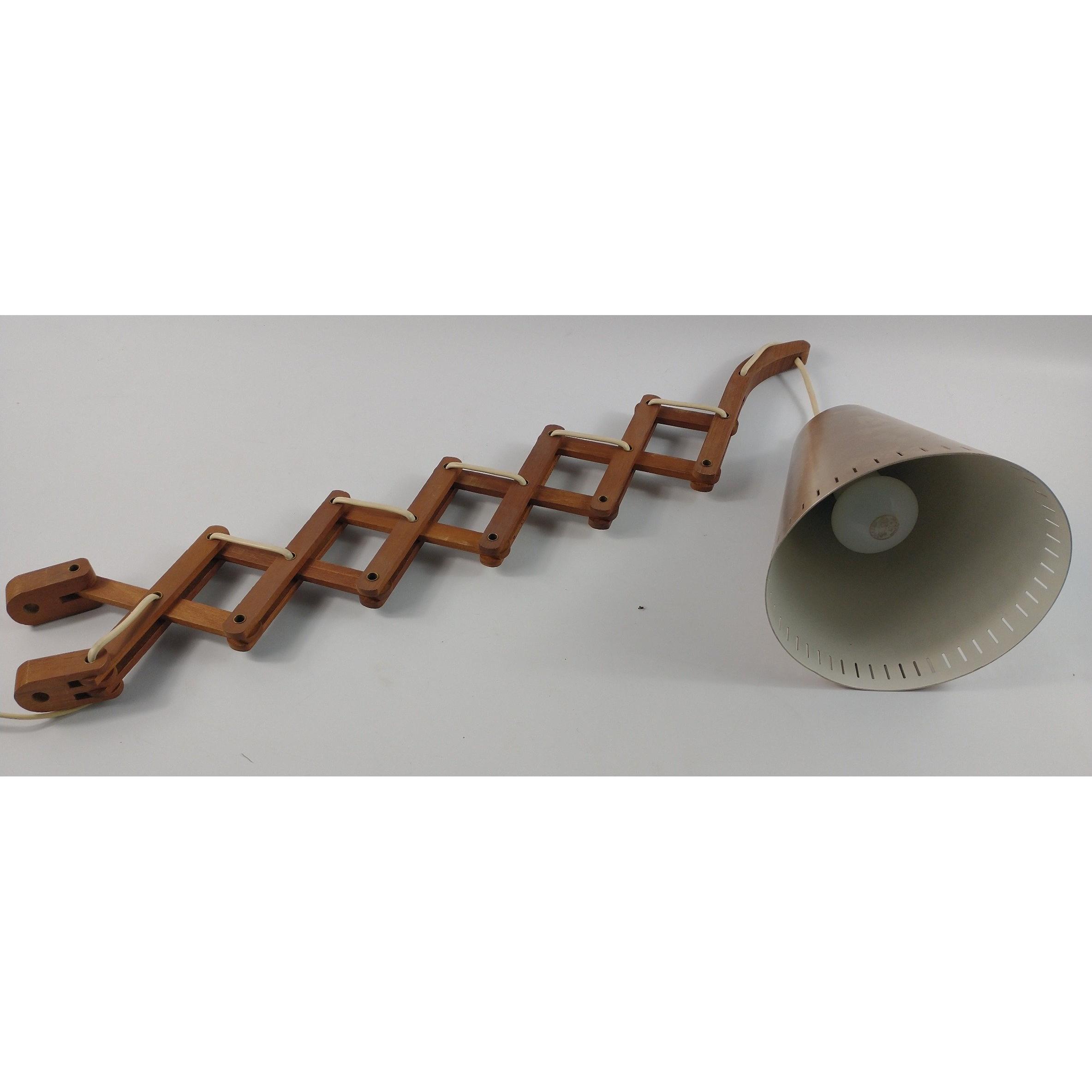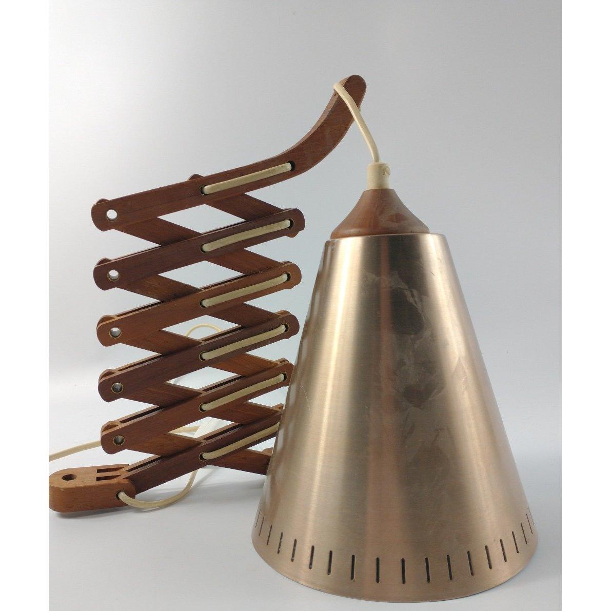 An unusual c1970's RETRO copperised ceiling light on an adjustable teak arm with flex and plug. WE SHIP TO THE UK AND WORLDWIDE