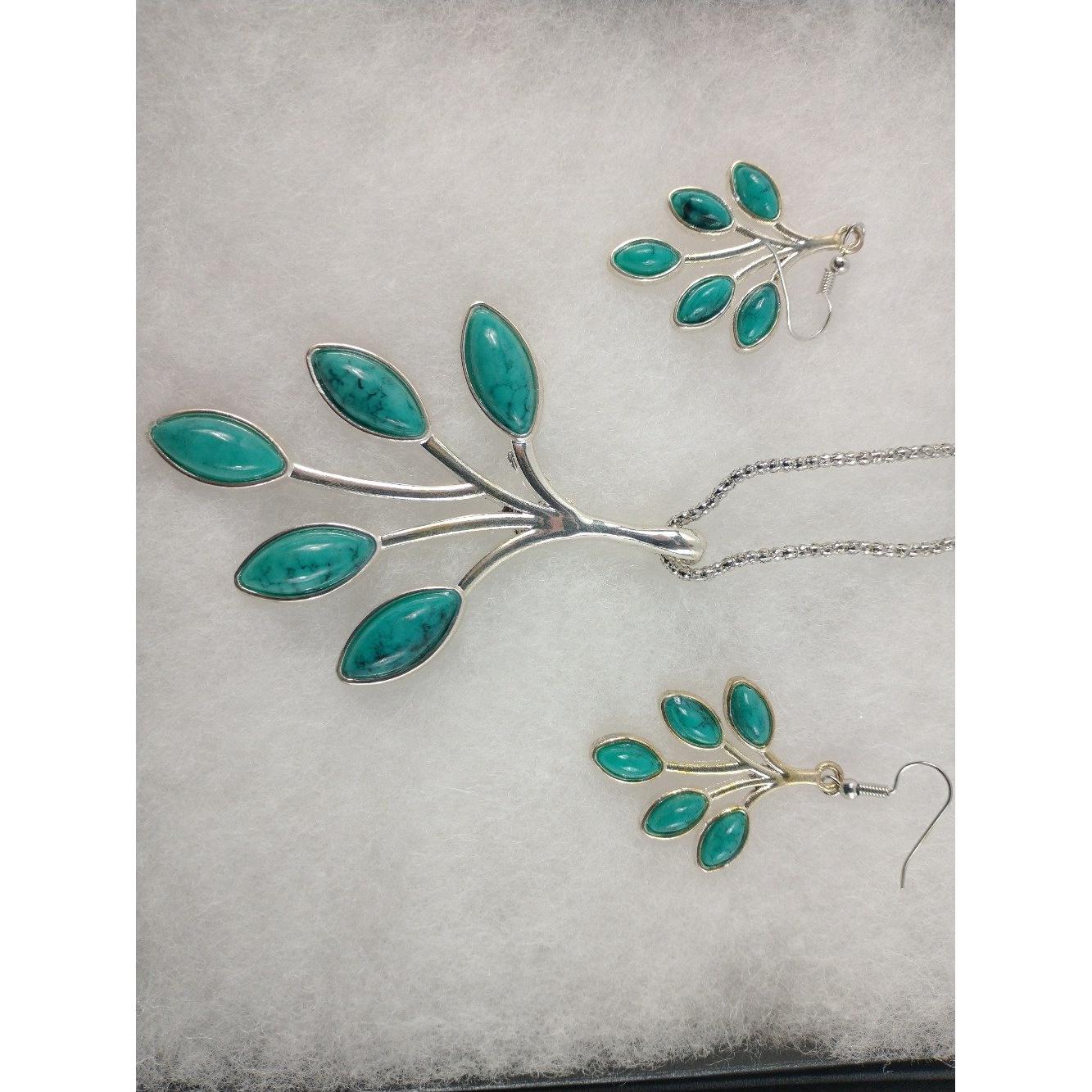 Selection of COSTUME JEWELLERY. 1 white metal necklace with green stones and matching earrings, 1 x necklace with faux pearls and coloured stones and 1 for your Valentine - white metal with large heart (approx. 5cm dia.).