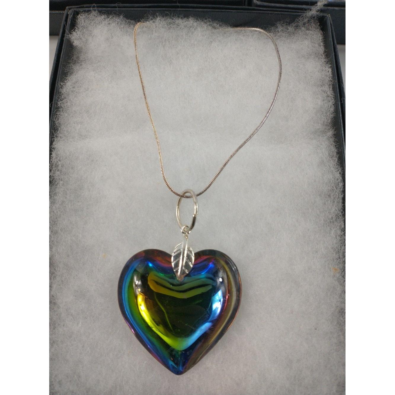 Selection of COSTUME JEWELLERY. 1 clear bead necklace (50cm approx.) complete with earrings. One for your Valentine - white metal necklace with a large heart (approx. 5cm). 1 necklace with faux pearls and purple stones approx. 50cm