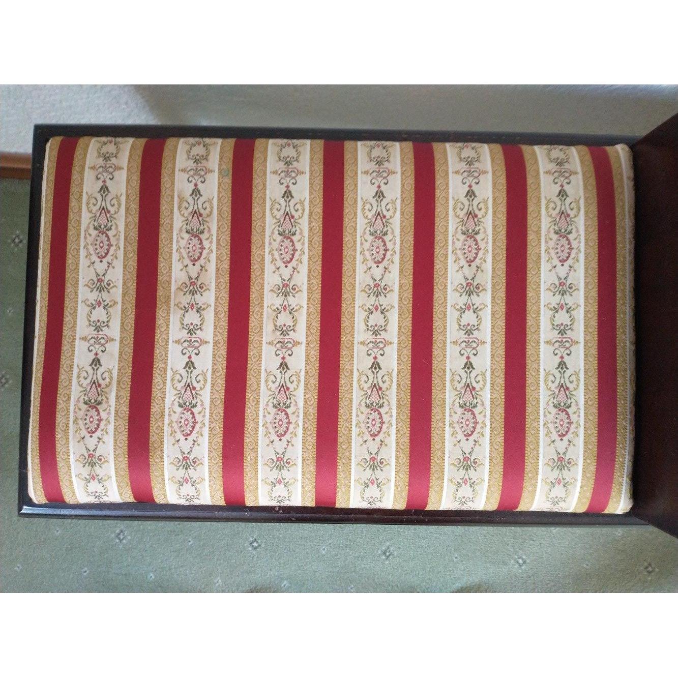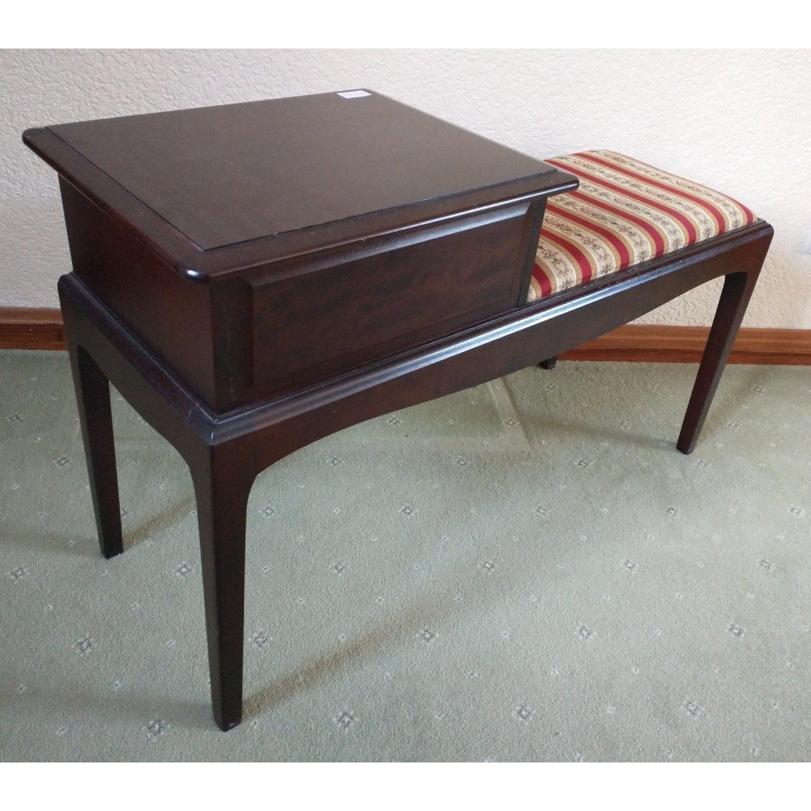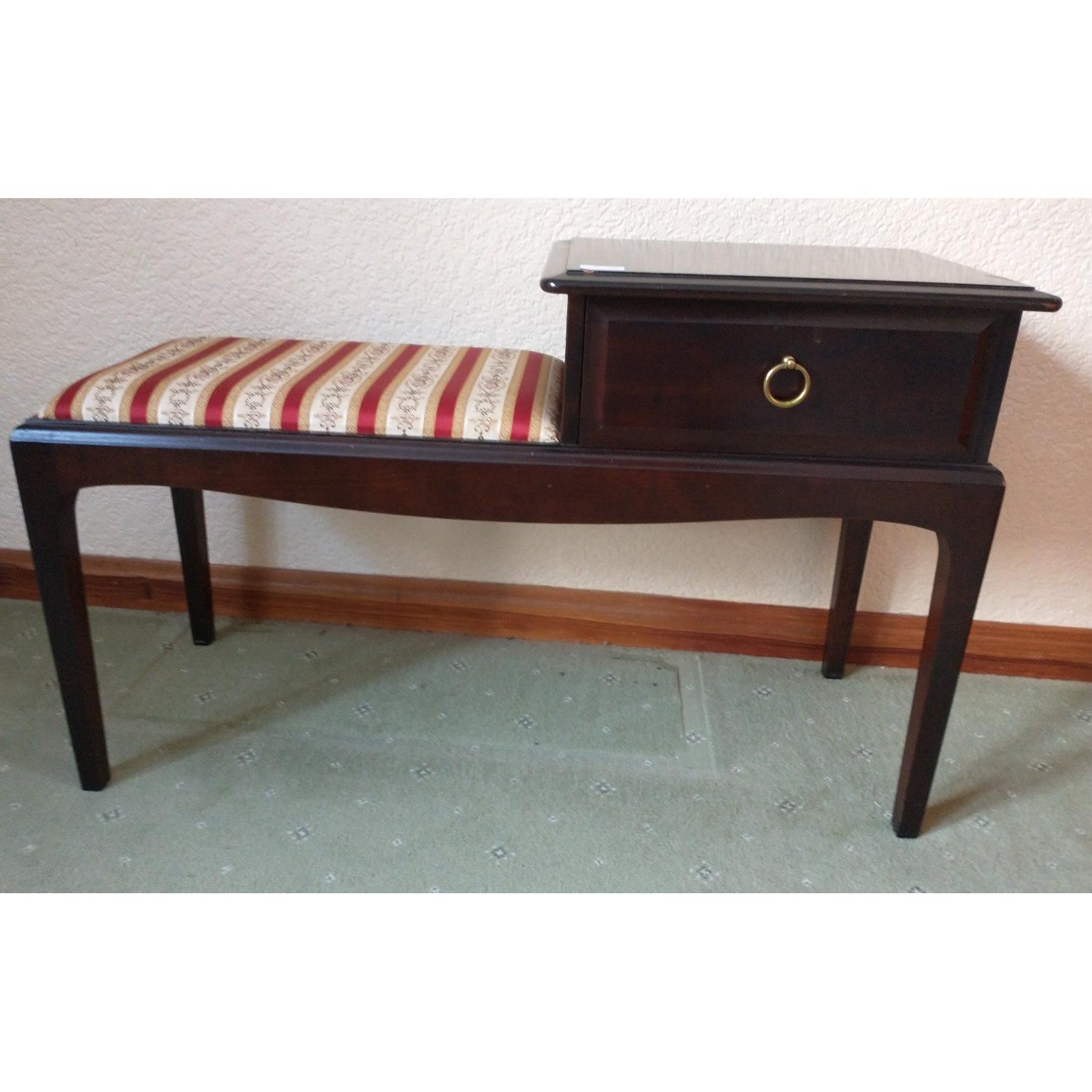 A STAG hall telephone table with striped fabric seat L: 3ft approx D: 1ft approx