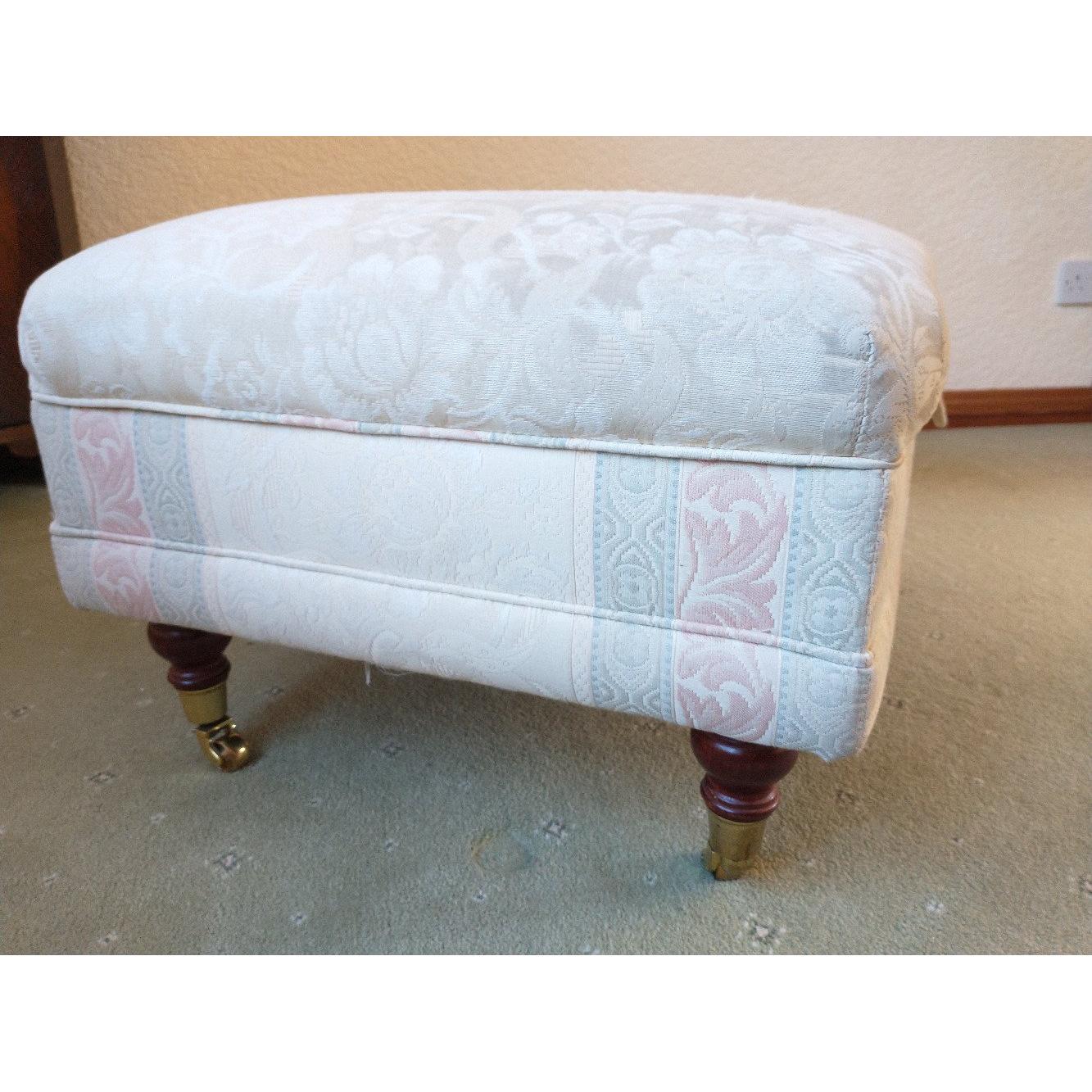 A nice comfy double upholstered footstool on brass castors with lid that lifts up and storage space within - a good use of space!L: 75cm approx W: 55cm approx