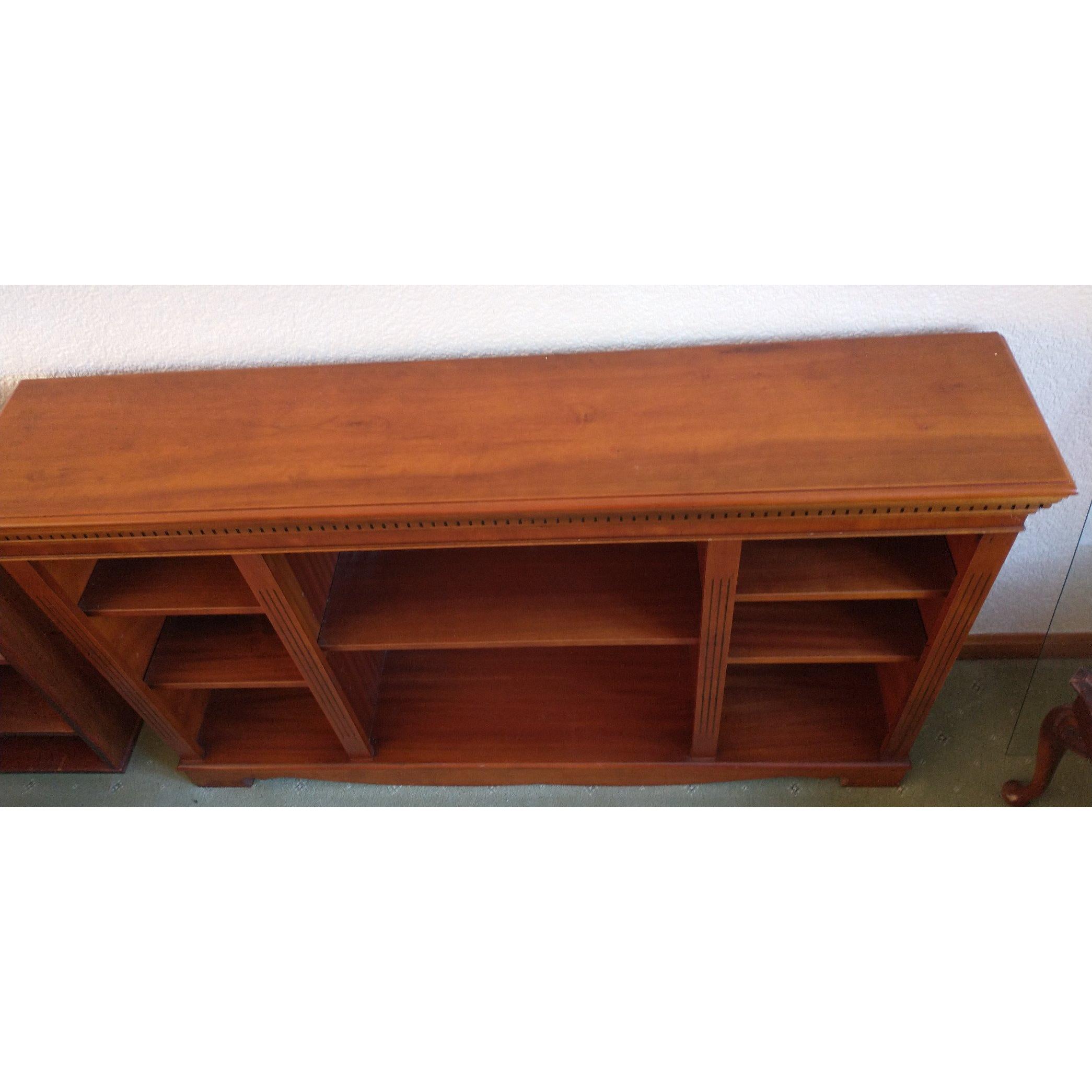 A nice quality yew wood style large multi- shelved bookcase L: 155cm approx H: 90cm approx D: 30cm approx