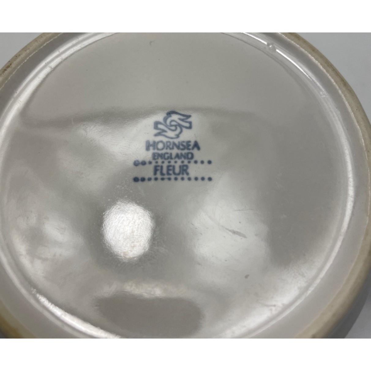 KITCHEN storage HORNSEA Fleur design tea, coffee and sugar jars with wooden lids, milk jug plus salt and pepper.