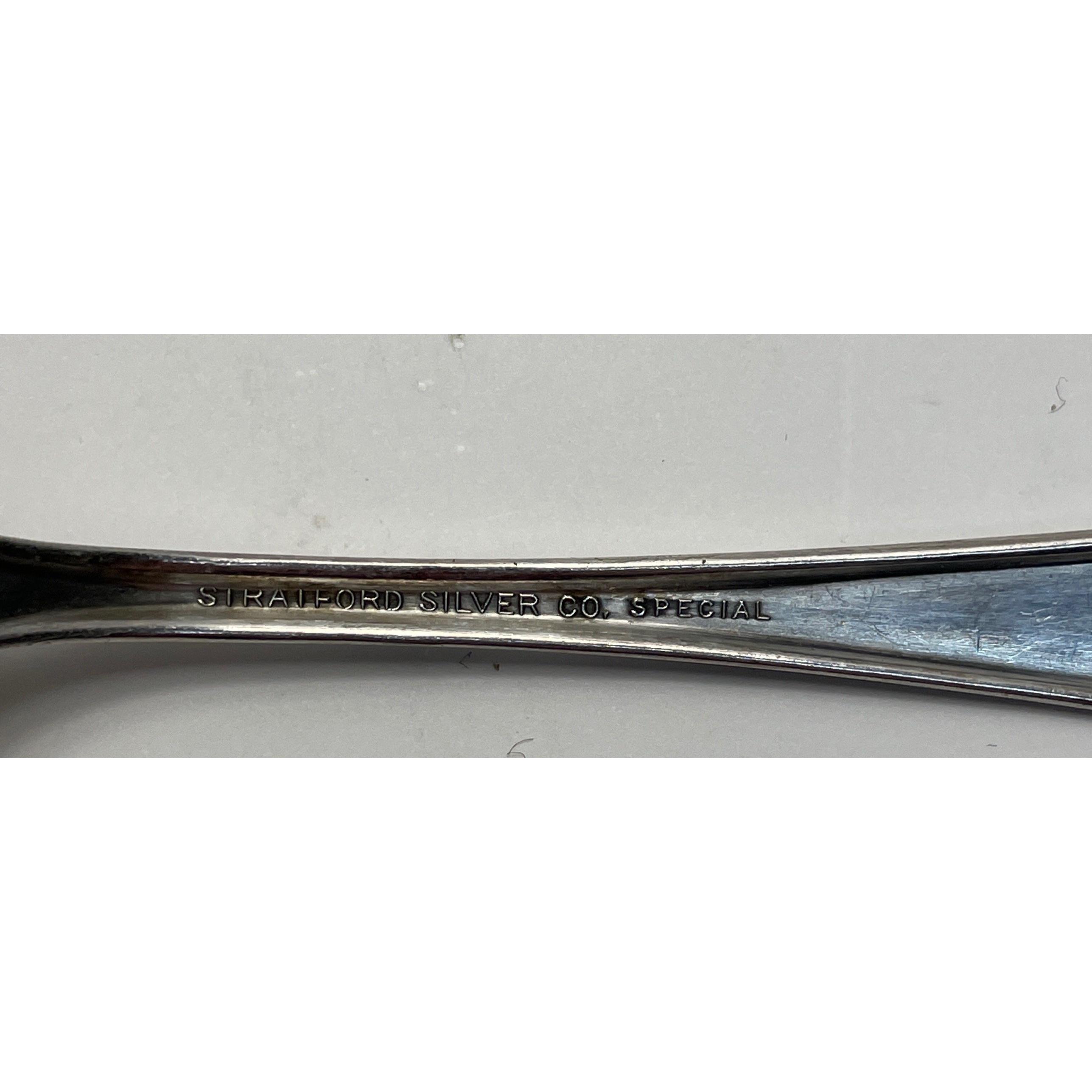 Collection of VINTAGE cutlery to include 6 STRATFORD SILVER CO. special grapefruit spoons, 6 coffee spoons, plus 5 mother of pearl style butter knives, sugar tongs etc.