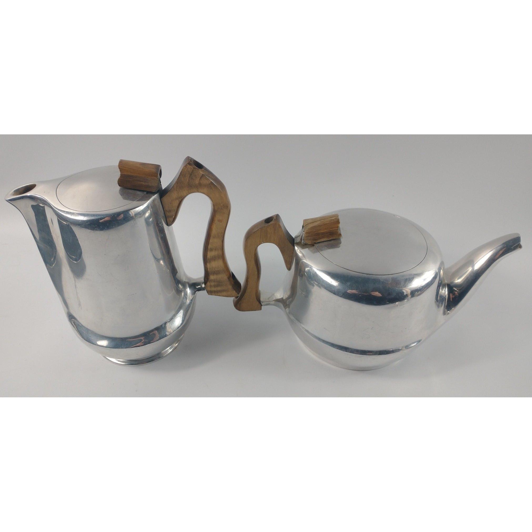 VINTAGE PICQUOT WARE tea coffee service with milk and sugar - nice clean set!. Comes with a non-Picquot tray.Approx 5 pieces