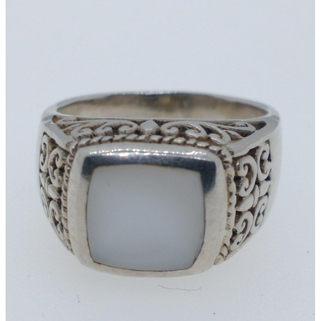 Large Gent's style ring set with Opaline stone and scrolling shoulders. Size U, comes in ring boxGross weight approx 9g