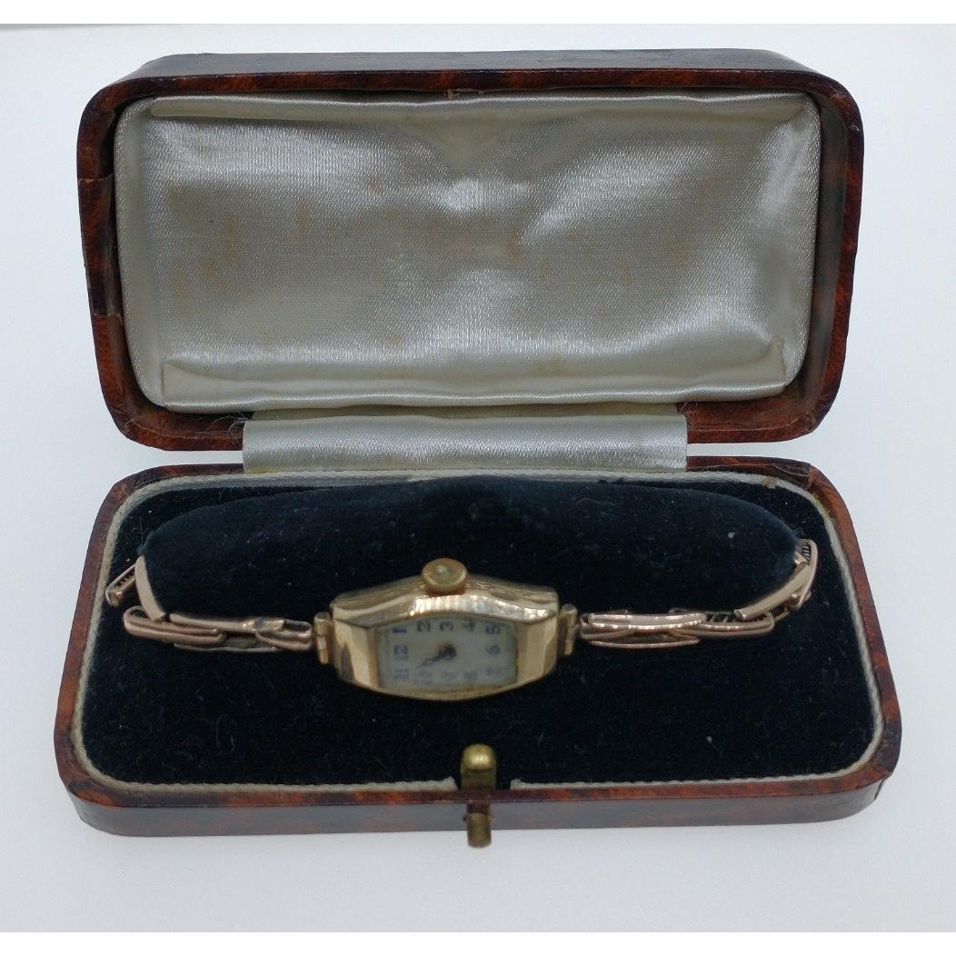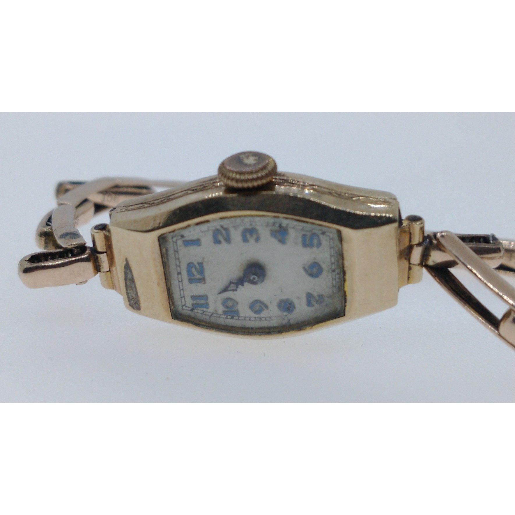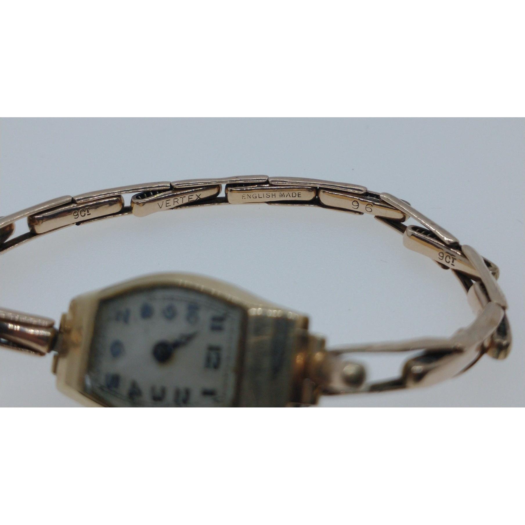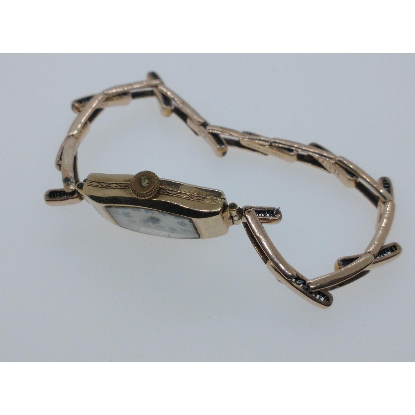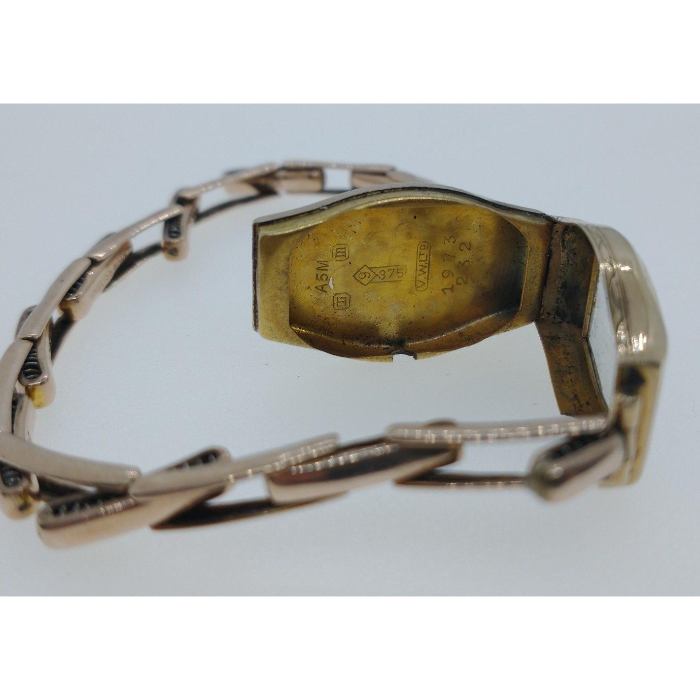 Ladies 375 cased wrist watch with 9ct stamped expander bracelet. Movement not named and need of service.