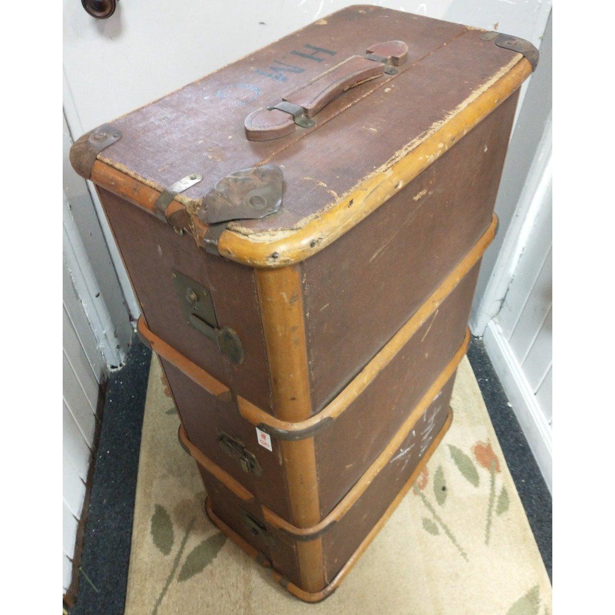 A VINTAGE steamer trunk with brass fittings and bentwood bindings - AN IDEAL COFFEE TABLE!L: 3ft approx W: 2ft approx H: 14” approx