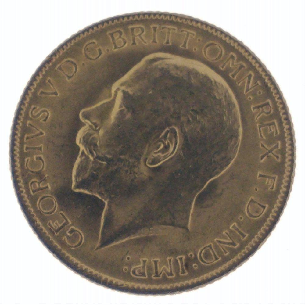 Featuring the iconic St George and the Dragon verso design by Benedetto Pistrucci. George V. Features the portrait of George V by Bertram Mackennal