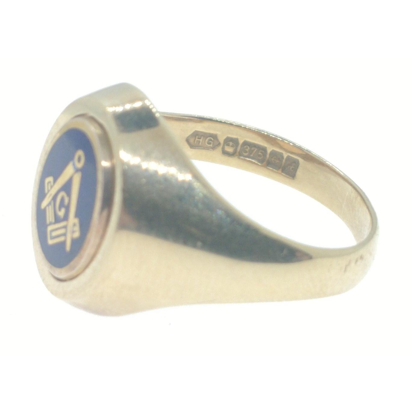 MASONIC INTEREST ! A NICE 375 stamped yellow gold MASONIC gents signet ring 5.31g weight gross approx with ‘swivel' faced Masonic emblem Gross weight approx 5.31g