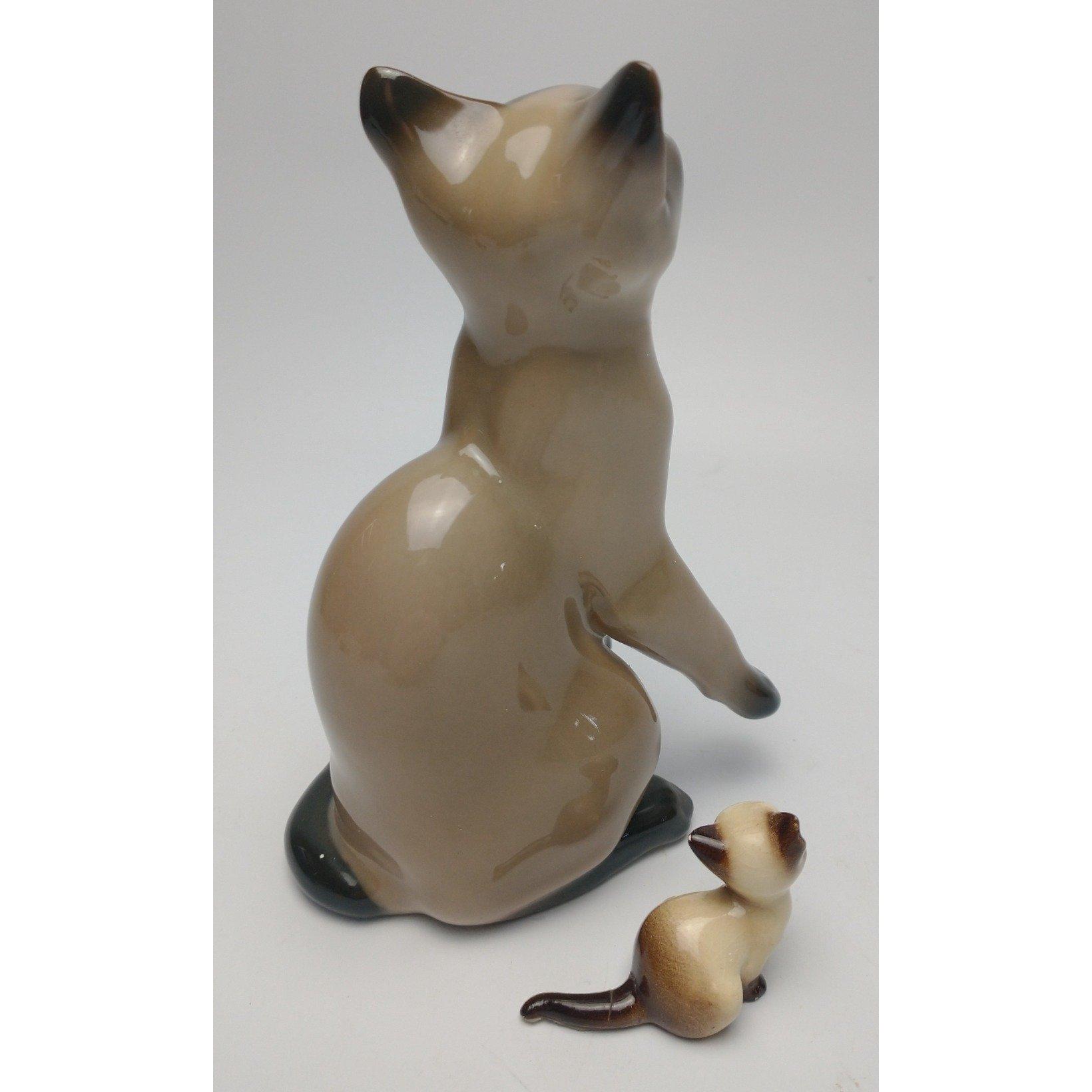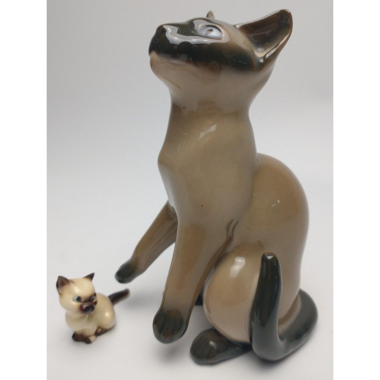 MEEOOWW! BING AND GRONDAHL porcelain Siamese cat standing approx. 15cm tall and a very cute, tiny Siamese cat.Approx 2 pieces