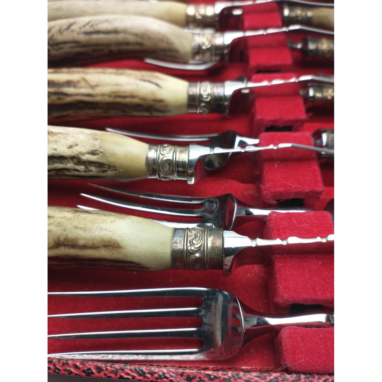 SUPER QUALITY! Boxed set of 6 FISH KNIVES AND FORKS with horn handles