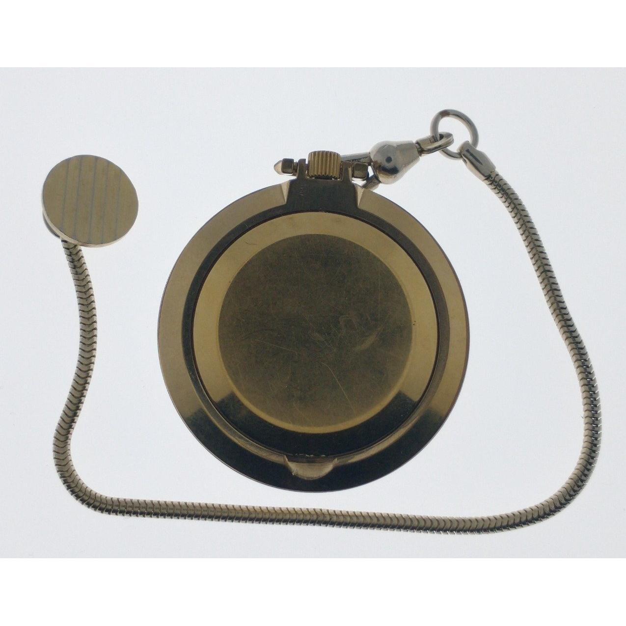 A SEKONDA slimline pocket style watch ( in working order) attached to a fob style chain 4cm diameterD: 4cm approx