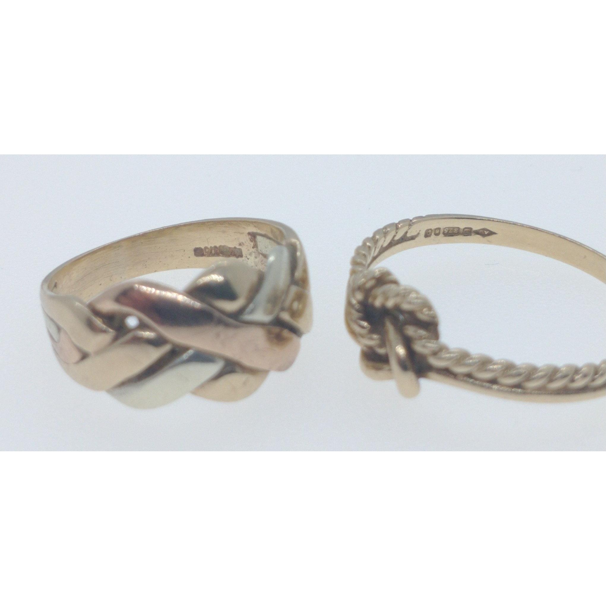 Two 375 stamped yellow gold rings, one in tri-coloured gold ring size J, the other ring size Q combined weight 4.74g Gross weight approx 4.74gApprox 2 pieces