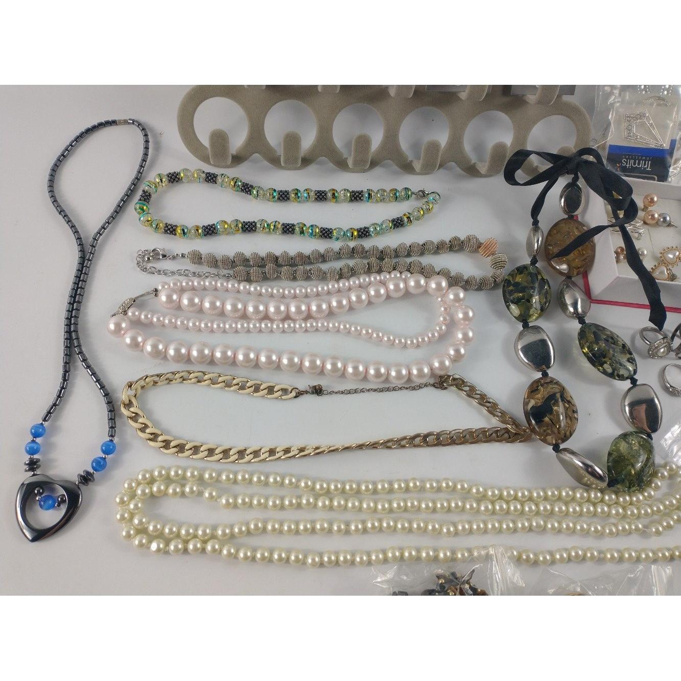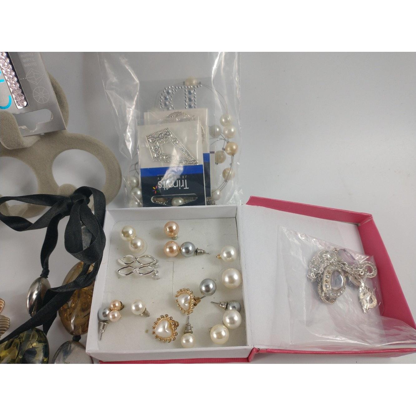 A bag stuffed FULL of mixed costume jewellery to include, earrings, necklaces etc.plus a hanger for display.