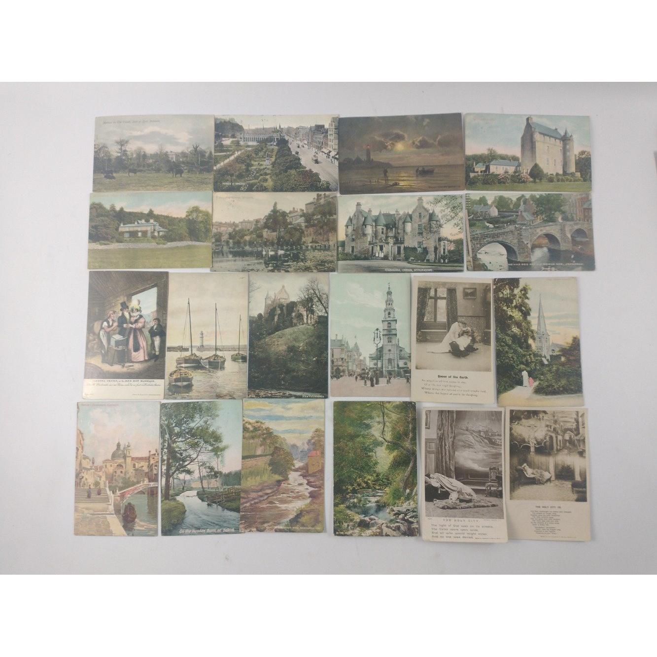 A RARE COLLECTION OF OLD POSTCARDS! LOCAL INTEREST AND SCOTTISH INTEREST AND CONTINENTAL ( lots of Glasgow/Edinburgh scenes c1900 onwards Collection of large (approx 150) to include of vintage postcards mainly local scenes to include NEWHAVEN, DRYBURGH ABBEY, Stow parish Church, Palmhouse Botanical gardens Glasgow, The Yew Tree At Roslin Castle, Ettrick Shaws, Rhymers Glen Melrose, Balloch castle, Lindisfarne Priory Holy Island, Leith Harbour, Stow Brae, Stow, Melrose Parish Church, Kibble Palace Glasgow, The Law North Berwick, French Ambassador's Chapel and House Old Edinburgh, Newark Tower, Queen Mary's Bath House Holyrood, Scott's Monument, High Rd Gala, Gretna Green Toll Bar 'Runaway marriage', Graham's Road Falkirk, Scott's Monument Edinburgh, Westminster Abbey, Ferry Rd Leith, Falls Of Clyde, Palace Of Scone Perth, Jedburgh, a few scenes of Stow, Langlee House gala, Botanic Garden Edin, River Tweed scene at Bullock Loan Kelso, Hornshole Hawick, Rothesay, Yetholm, Dean Bridge Edinburgh, Earston, Rosslyn Chapel, Corbie Linn nr Selkirk, The Cornish Coast, Castle Place BELFAST VENICE Fondamenta Ognissanti and much much more!