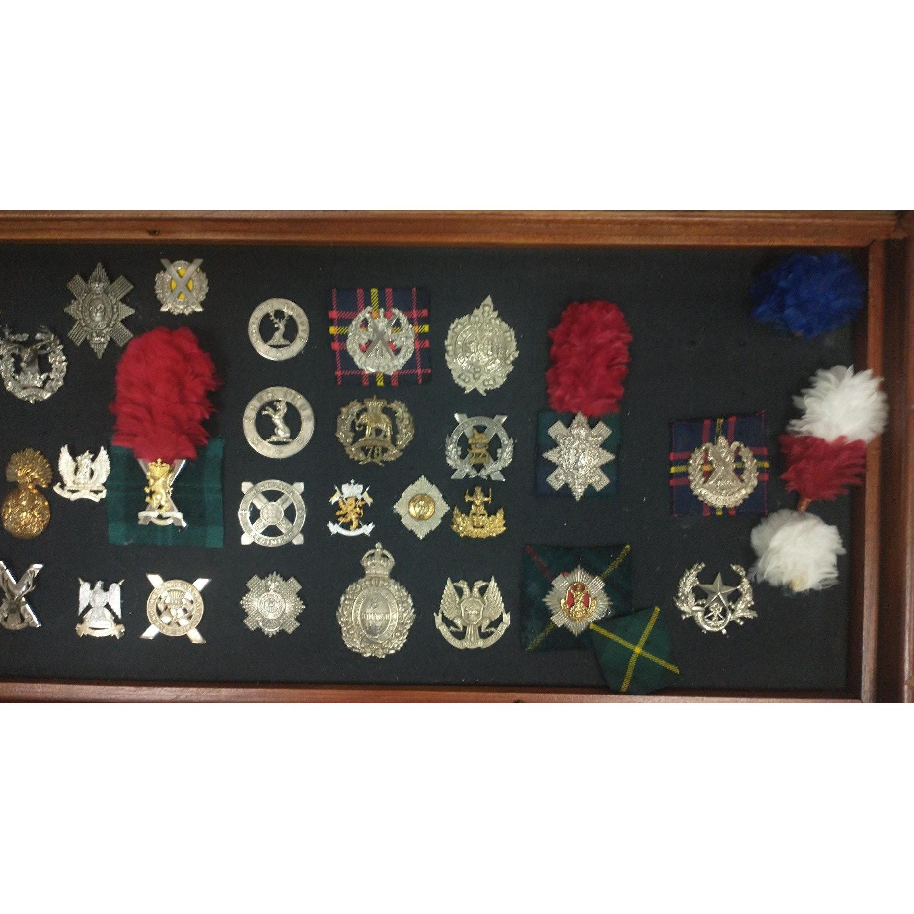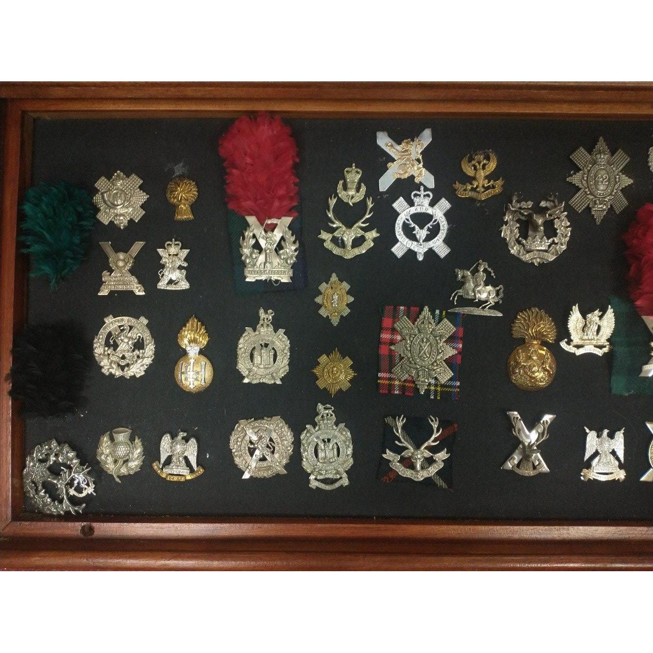 Framed COLLECTION(over 45) from A PASSIONATE COLLECTOR OF HIGHLAND bonnet/cap badges to include THE ROYAL SCOTS, LOVAT'S SCOUTS, ARGYLL & SUTHERLAND HIGHLANDERS, GORDON HIGHLANDERS, TYNESIDE SCOTTISH, KOSB, LIVERPOOL ROYAL SCOTS GREYS, LOWLAND REGIMENT, SEAFORTH & CAMERONS, LANARKSHIRE YEOMANRY and lots lots more!