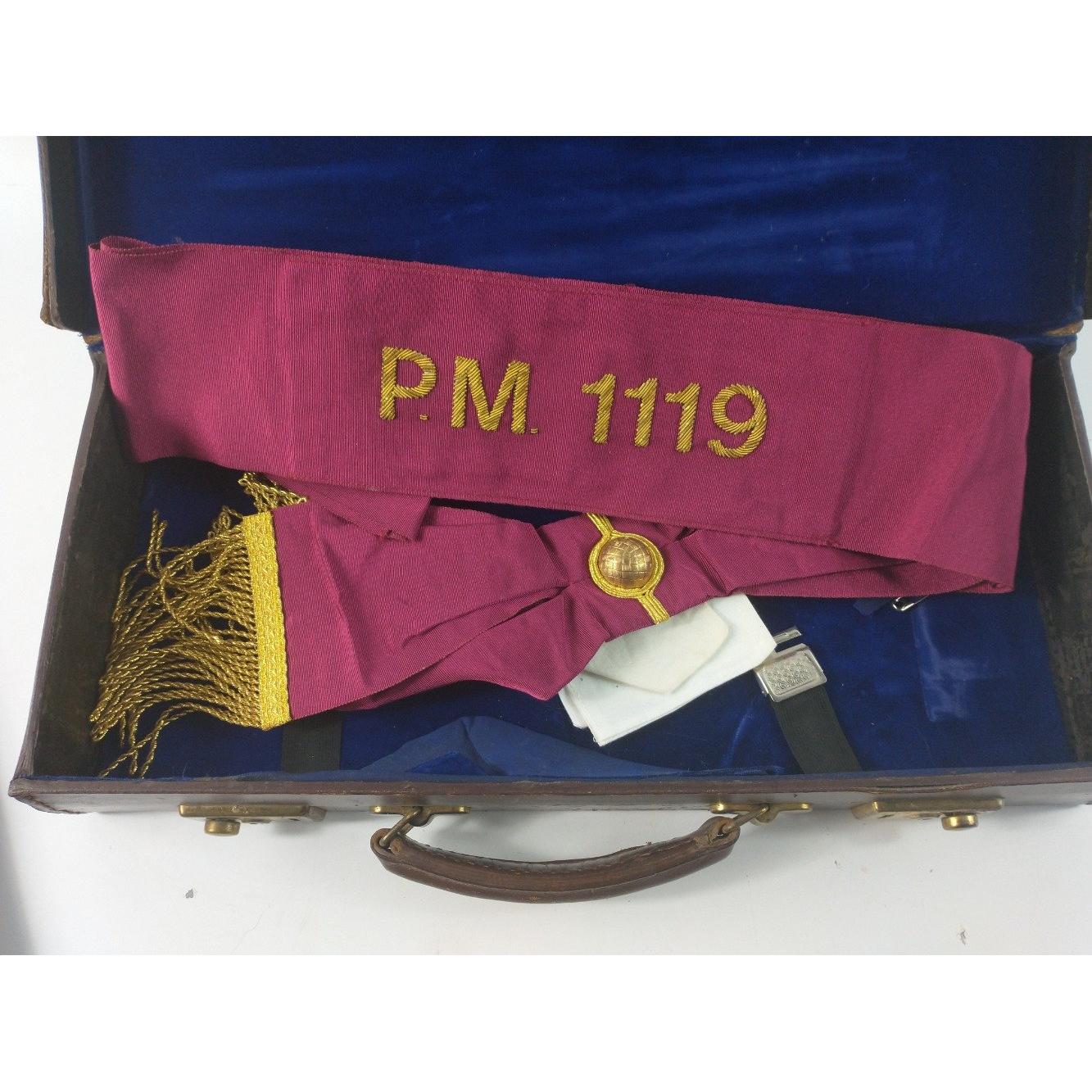 This lot includes a VINTAGE MASONIC leather protective carry-case to carry and protect all to and from meetings etc.