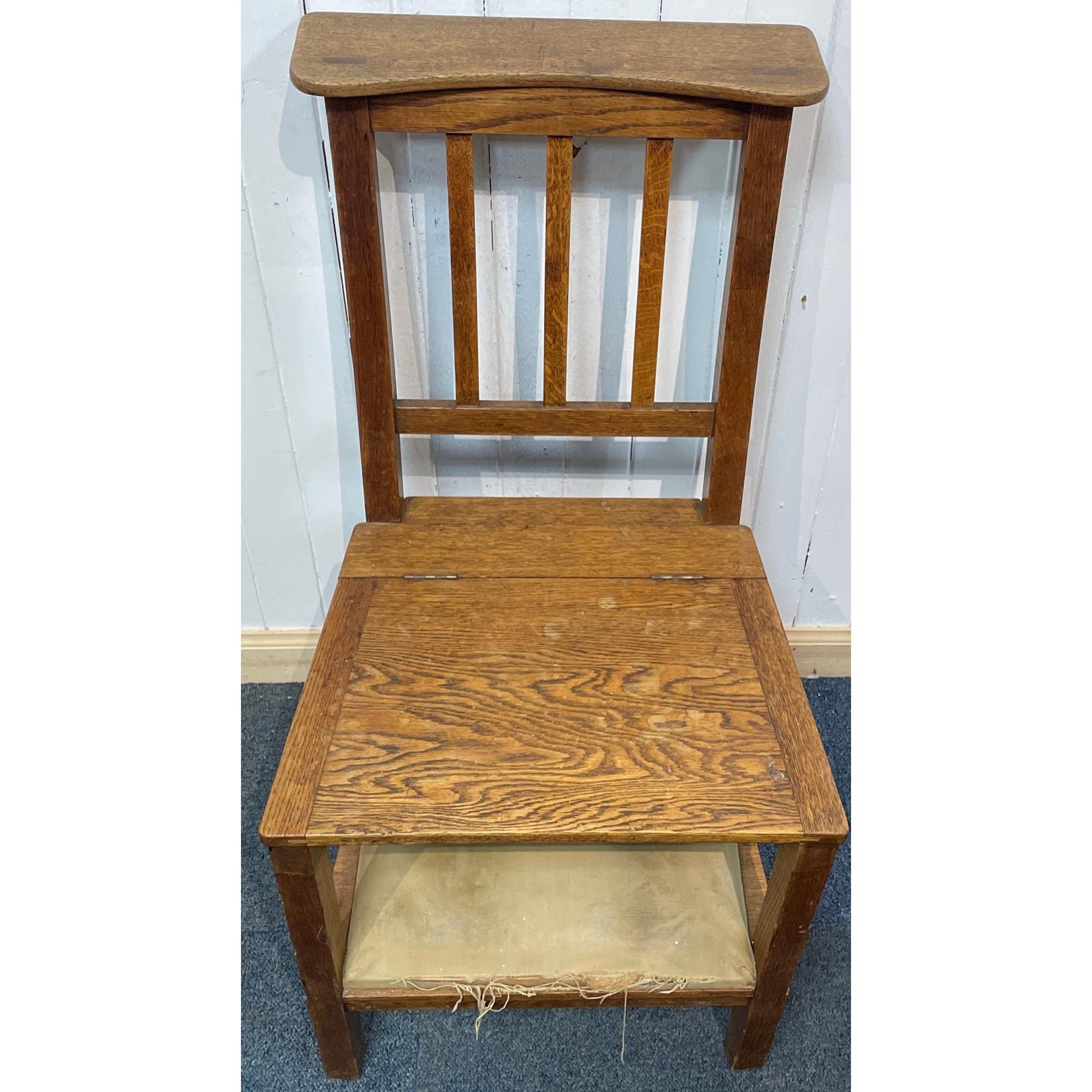 Vintage OAK PRAYER CHAIR, seat lifts on hinges to convert into an upholstered prie-dieu. Height 49cm, height to seat 43cm.
