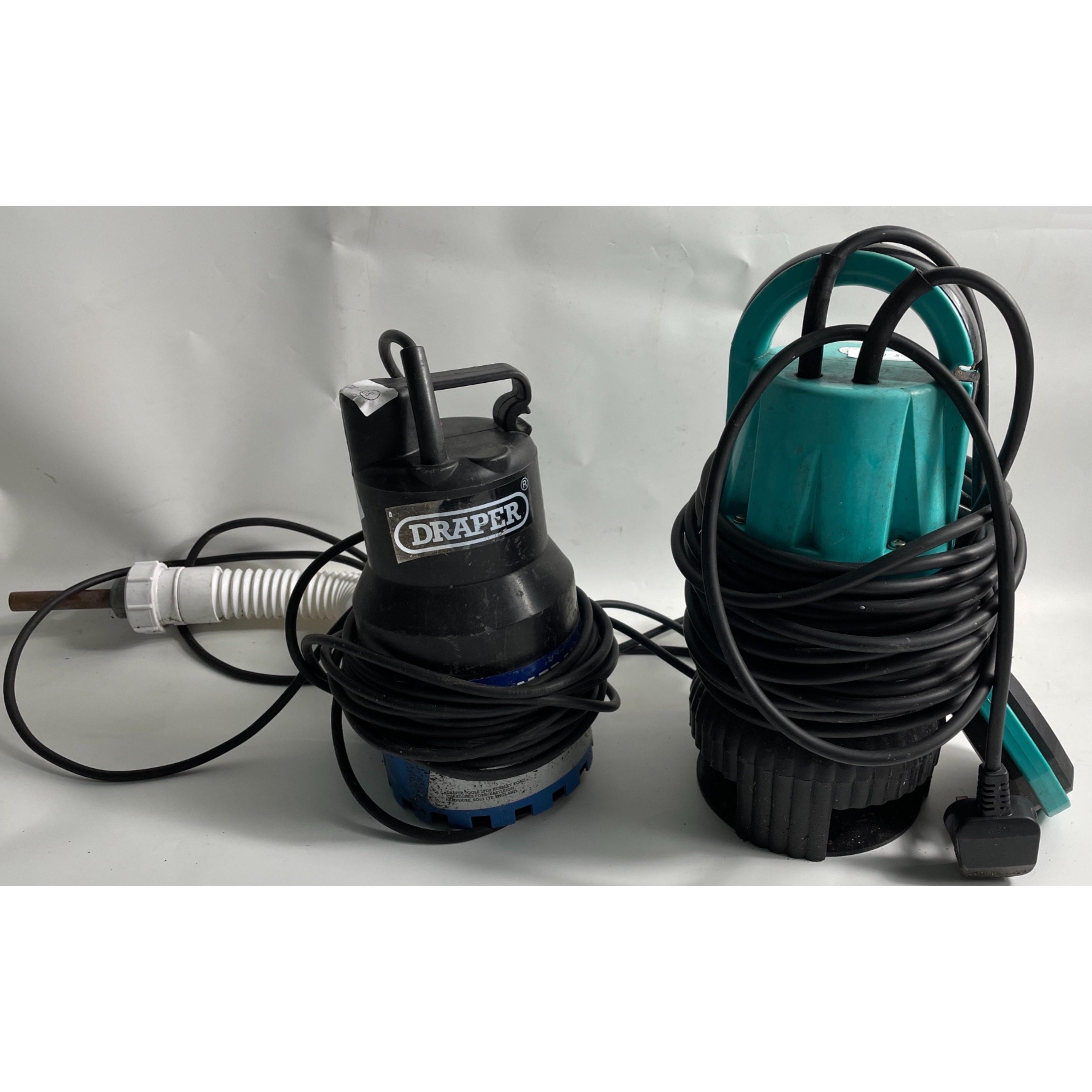 Two water pumps one by DRAPER, the other B&Q, for ponds etc.