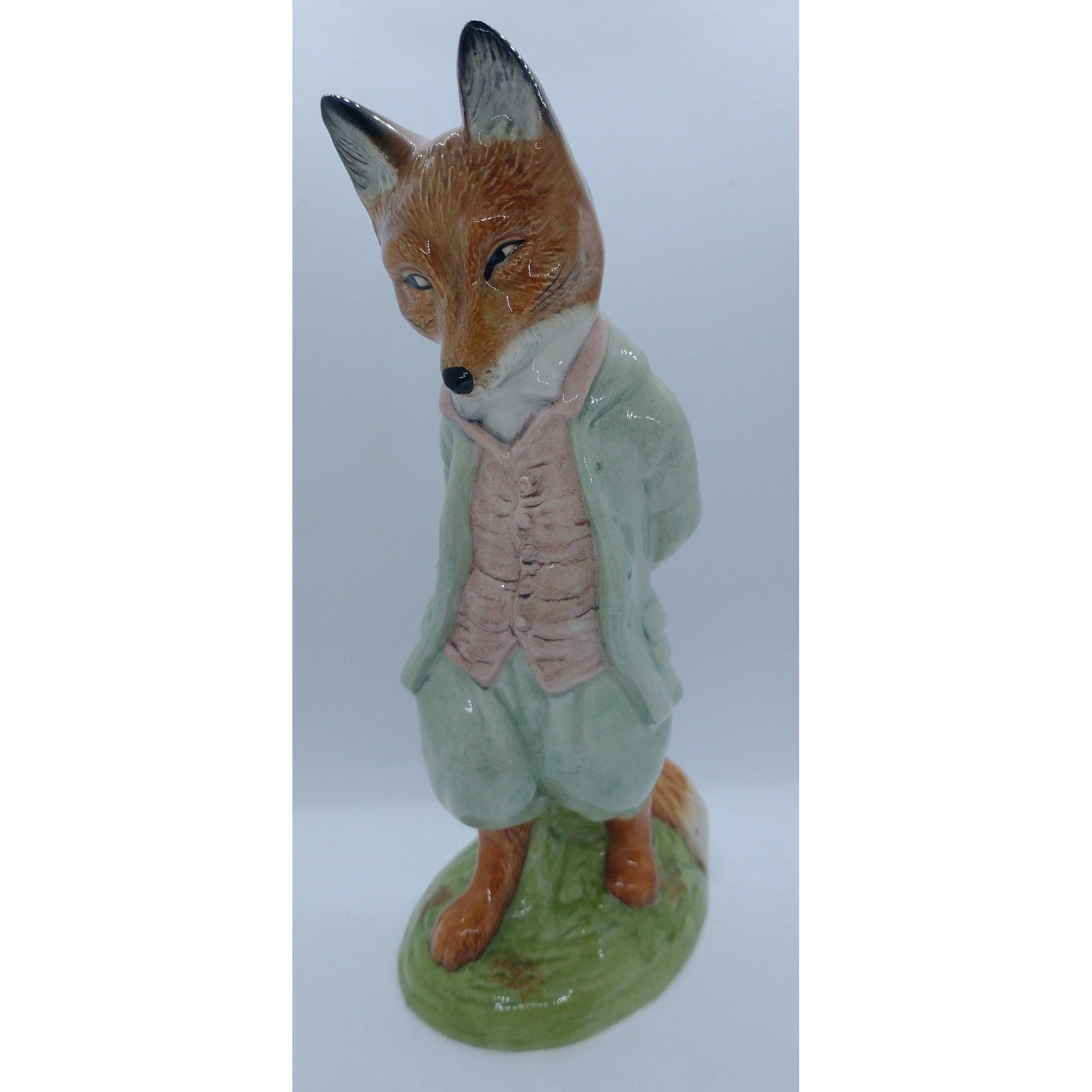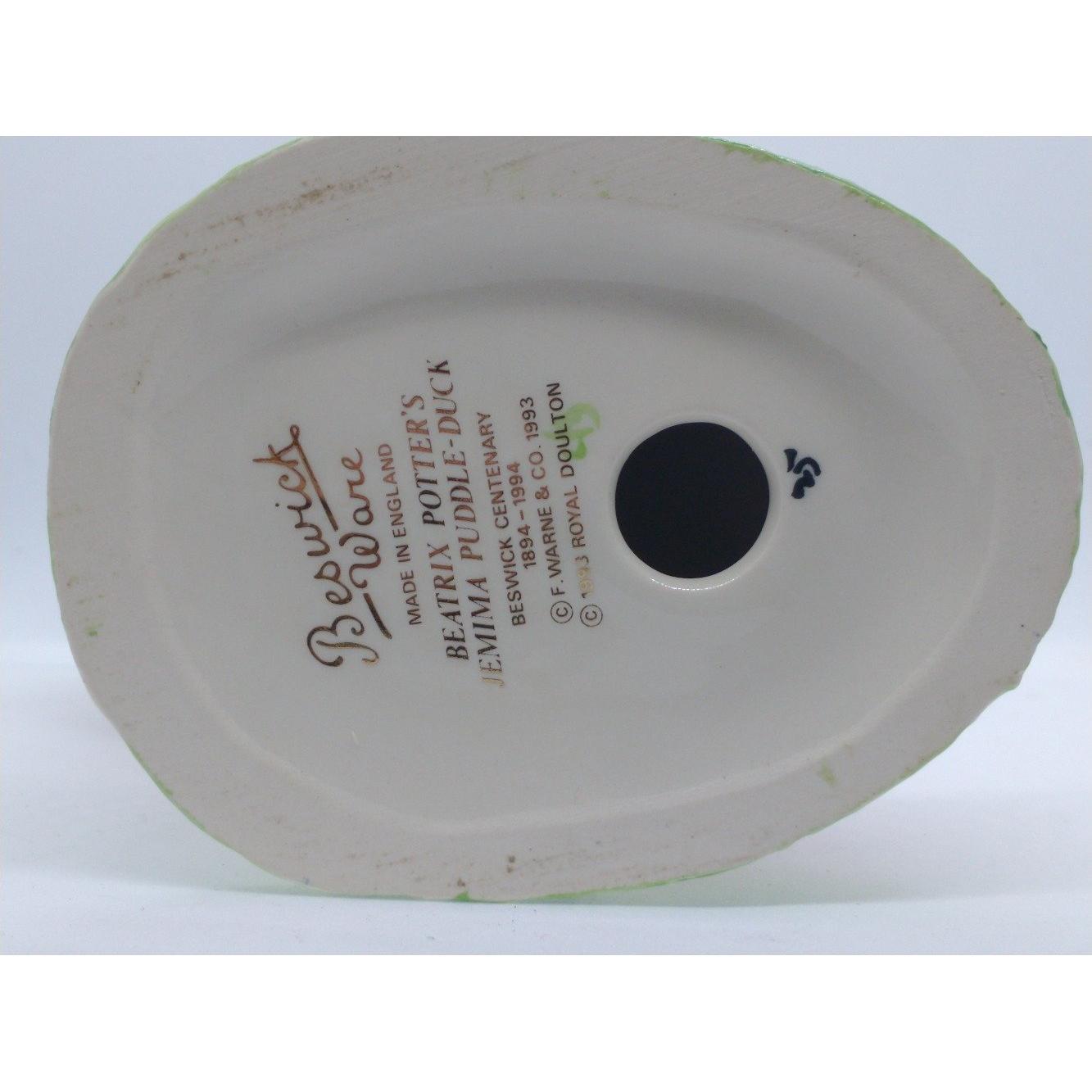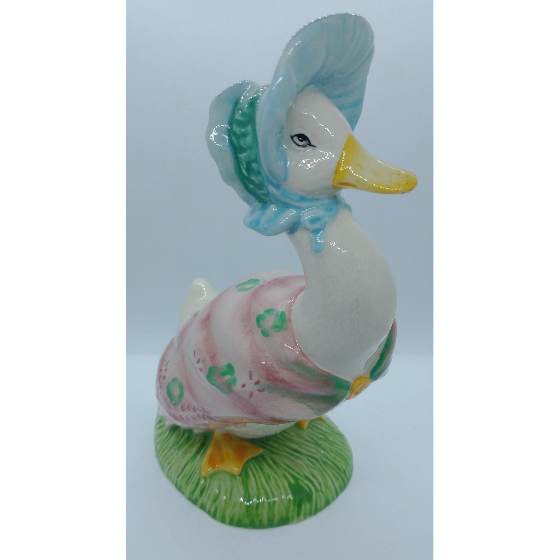 BEATRIX POTTER figures - BESWICK ware JEMIMA PUDDLEDUCK (15cm tall approx. ) ROYAL ALBERT FOXY WHISKERED GENTLEMAN (17cm appprox. ) and BORDER FINE ARTS PETER RABBIT 100 year anniversary ( 9cm approx.)