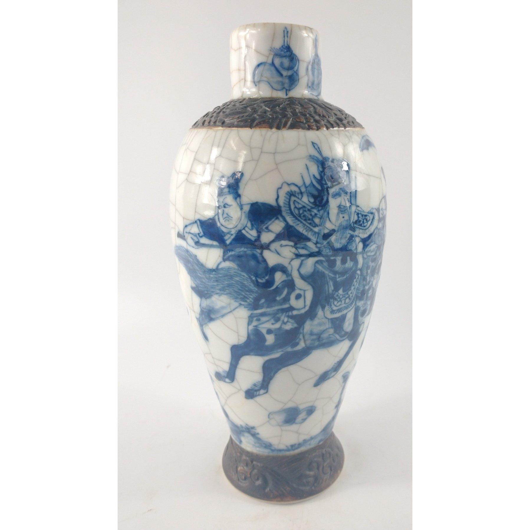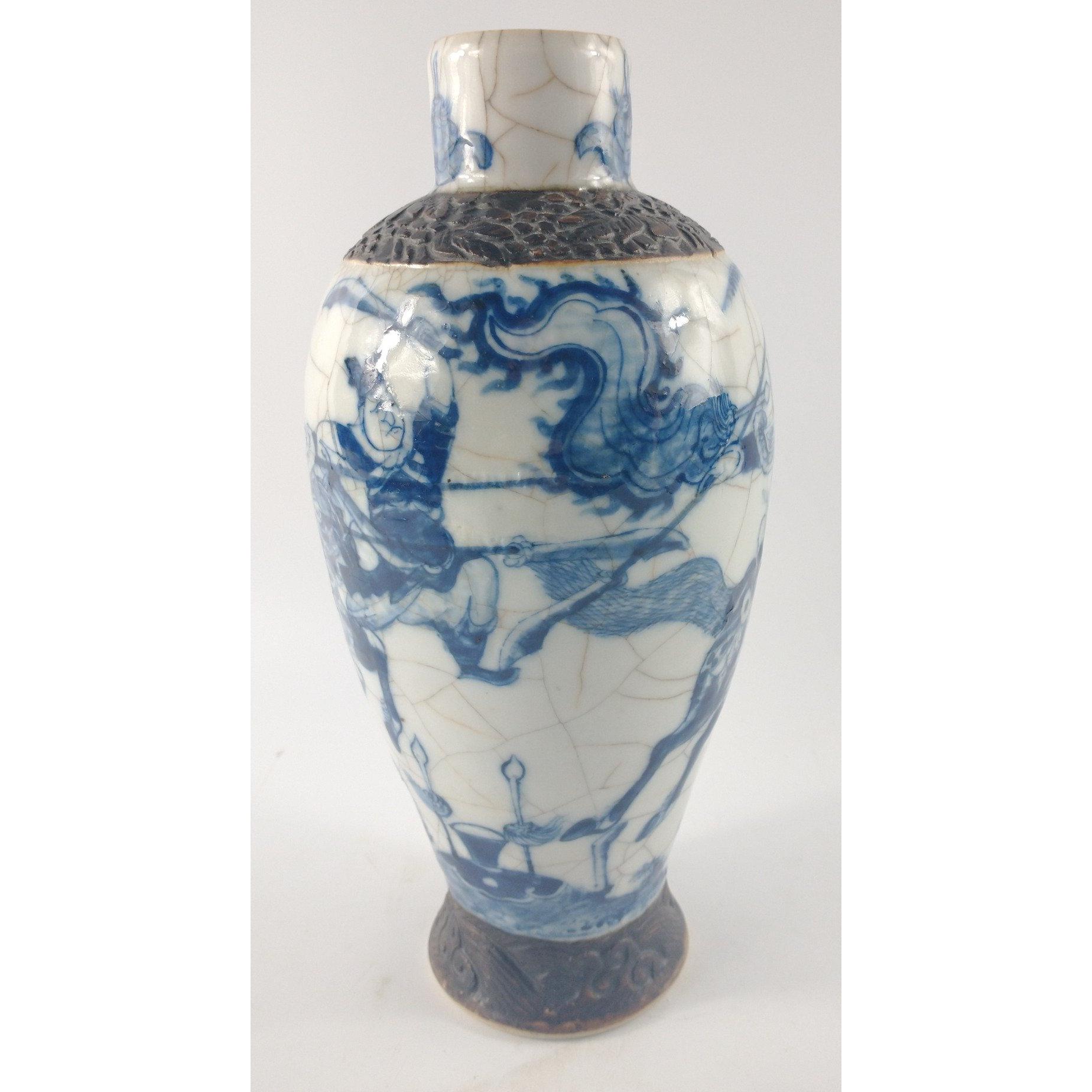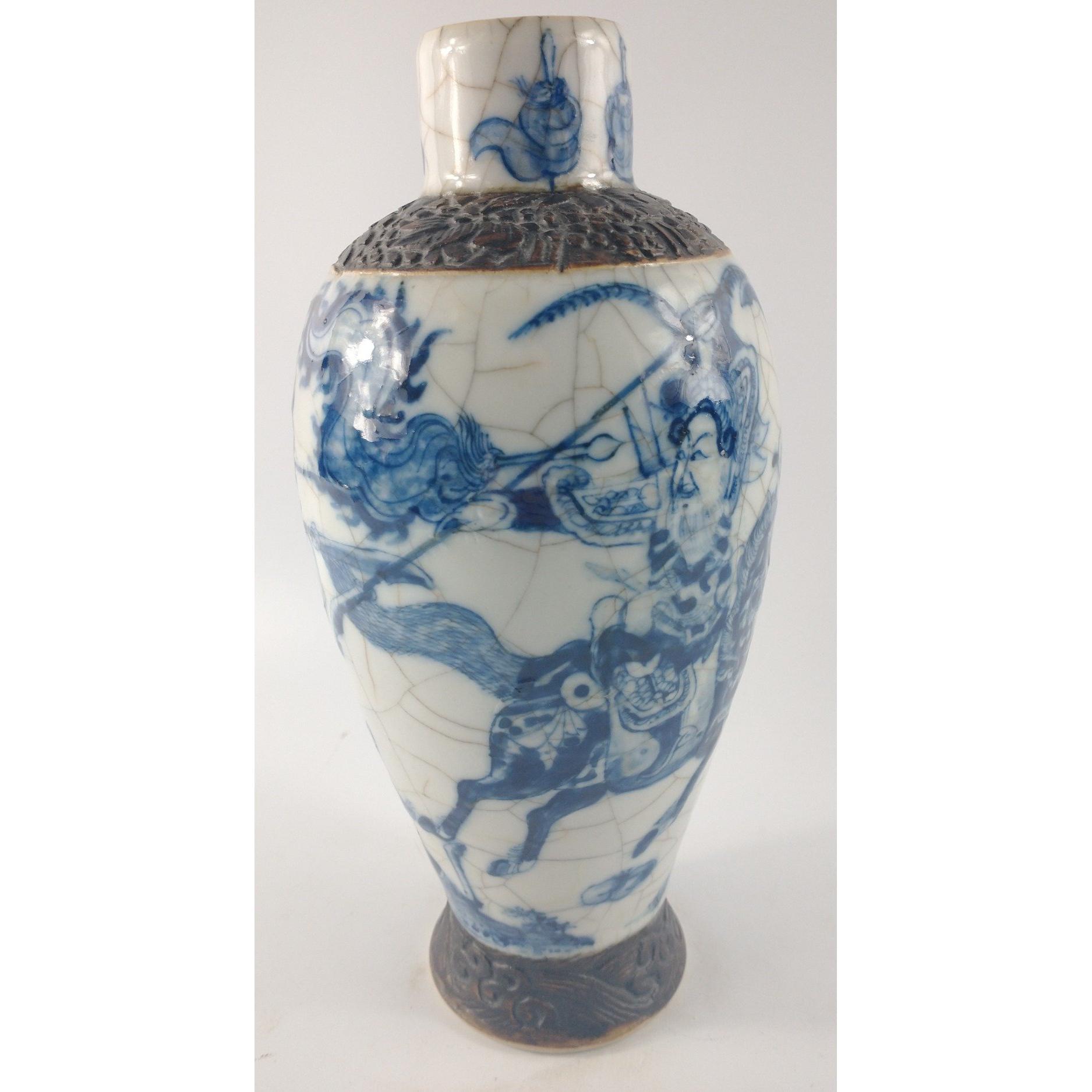 Antique Chinese Crackle Ware Glaze Baluster Vase circa 1900 decorated with scenes of warriors in battle! In good condition. 27cm tall H: 27cm approx