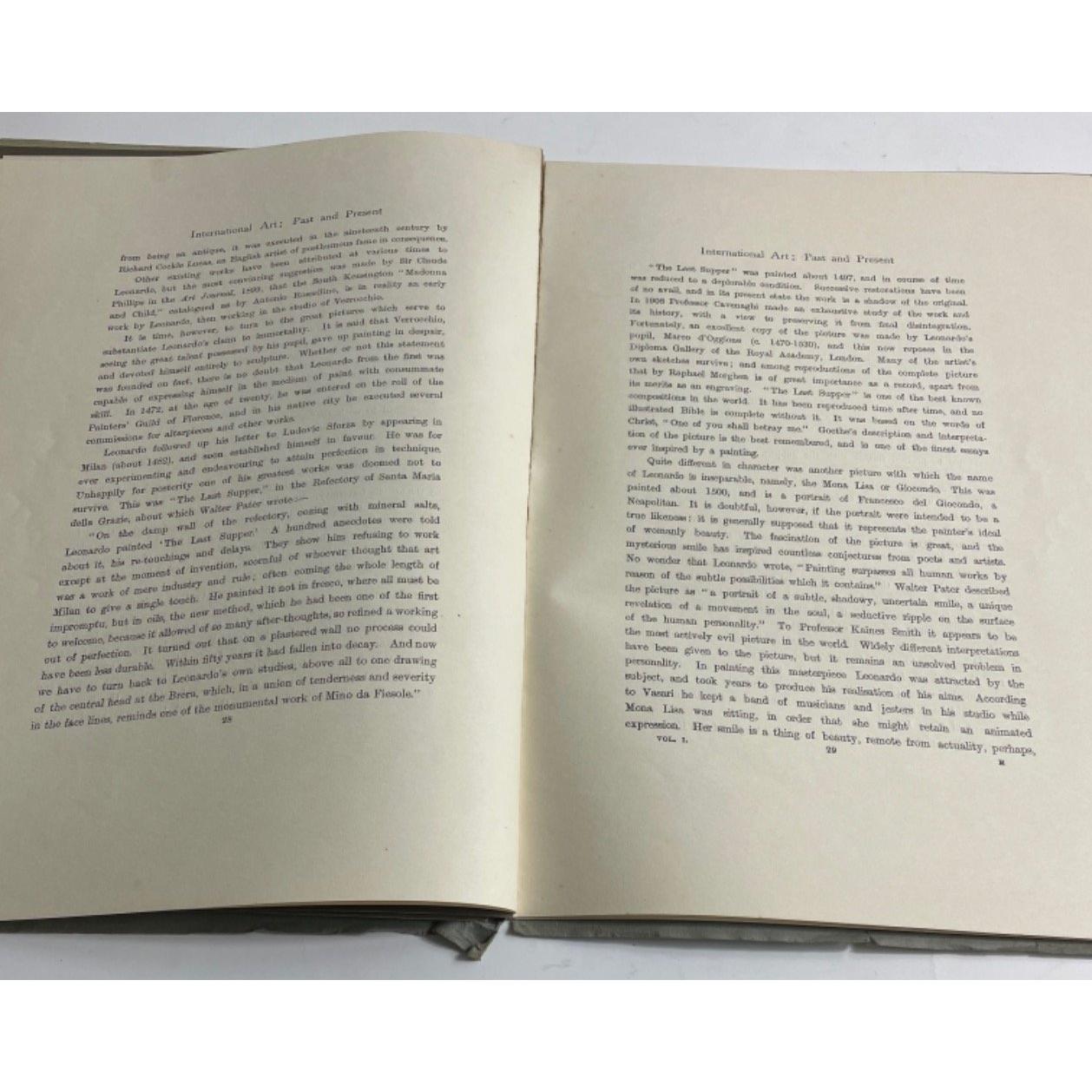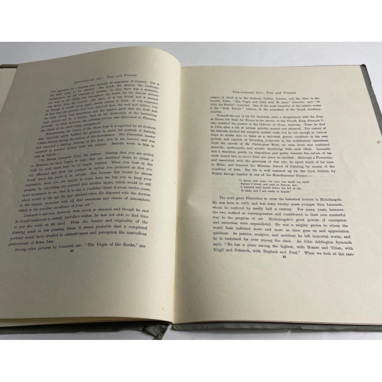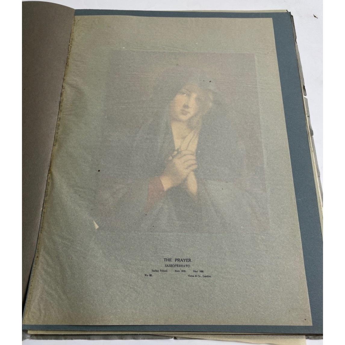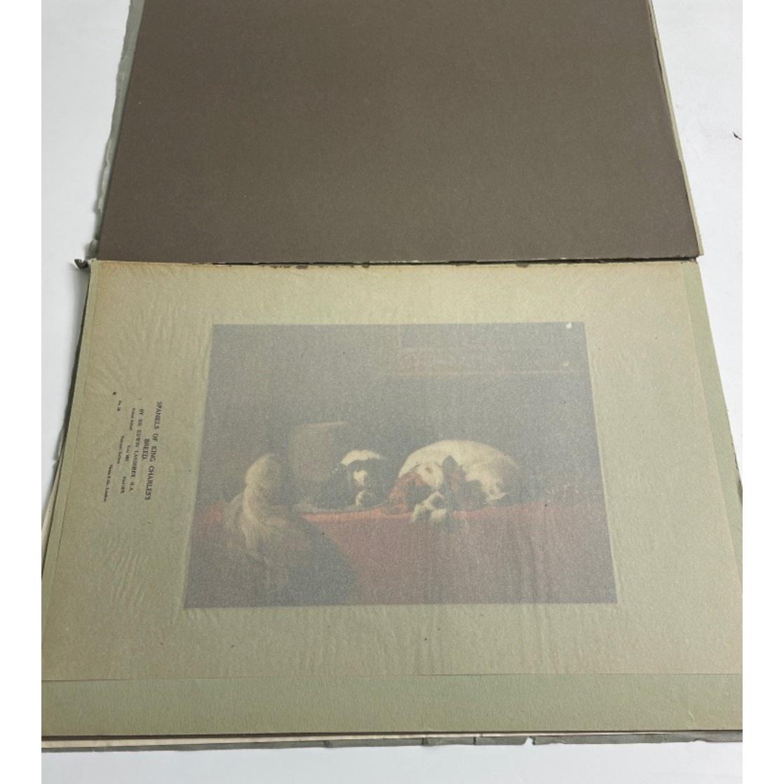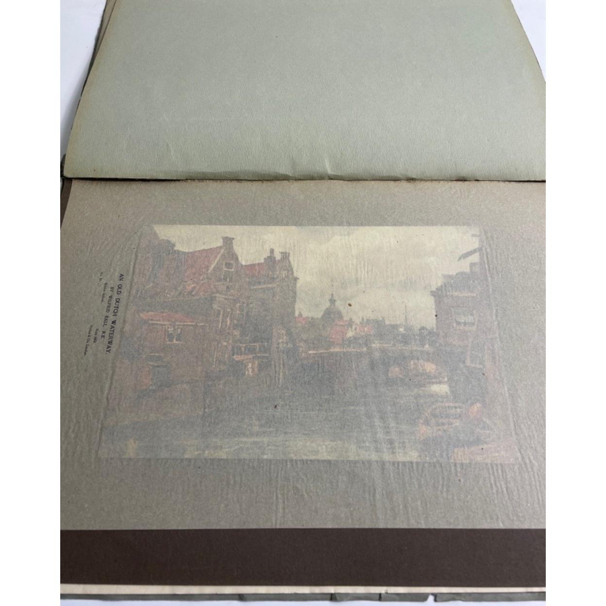 INTERNATIONAL ART PAST & PRESENT Div. 3 published in London by Virtue & Co. (1915) consists of 9 approx. 26 x 17cm colour plates reproducing paintings in Western art history protected by a captioned tissue card. Includes 'Oh mistress mine, where are you roaming?' by Edwin Abbey, 'The prayer' by Sassoferrato, 'Interior of a Dutch house' by Pieter de Hoogh, 'The Villa Doria - Panfili, Rome by AG Decamps, 'Spaniels of King Charles's Breed' by Edwin Landsser, 'Autumn Leaves' by John Everett Millais, An Old Dutch Waterway by Wilfrid Ball. Folio is in a fragile state but the prints are in good, unfaded condition.