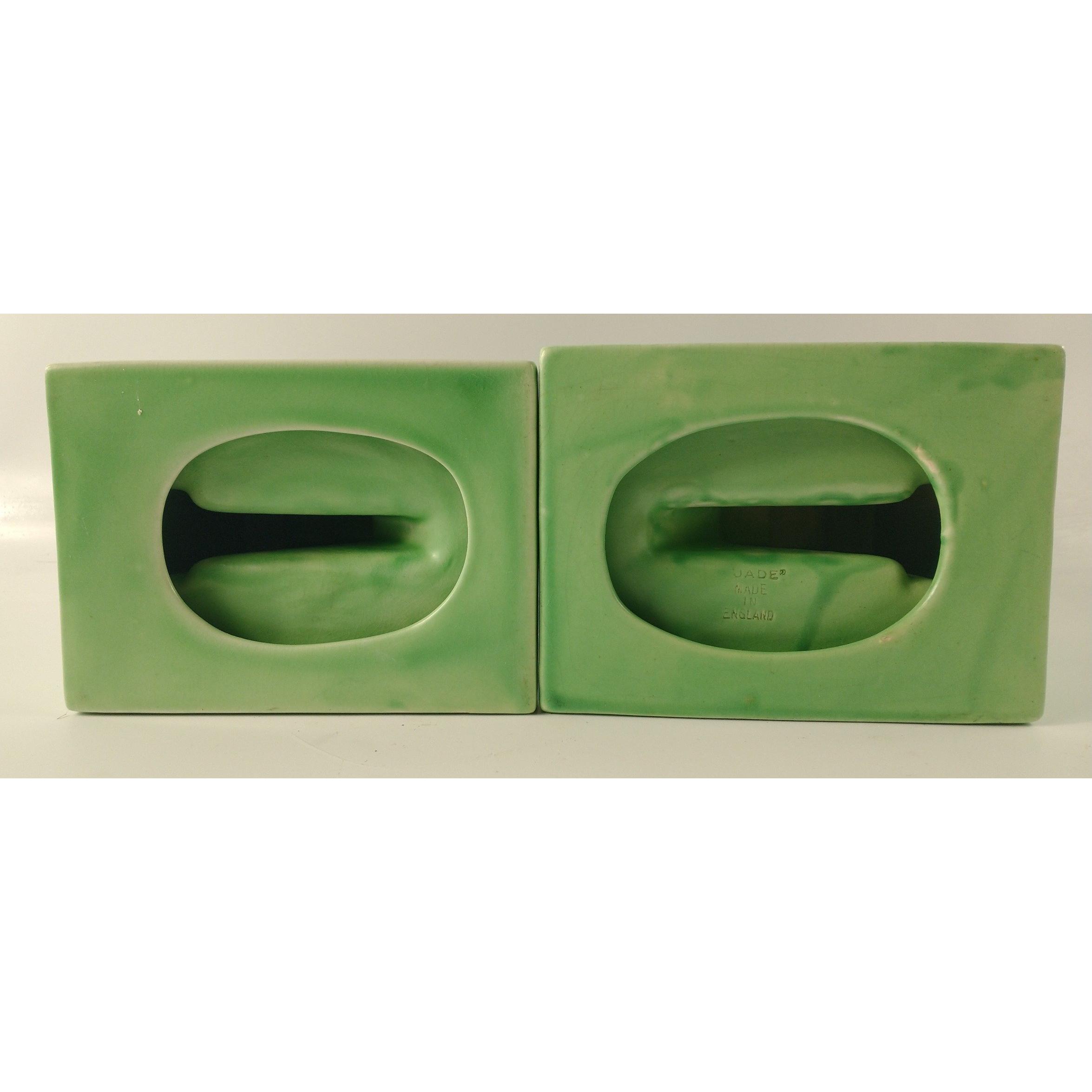 AMAZING! ART DECO glazed pottery bookends in Mint Green - a CLASSIC addition to your bookshelf!! No makers stamp present but possibly SYLVAC..dimensions below are for each bookend!
