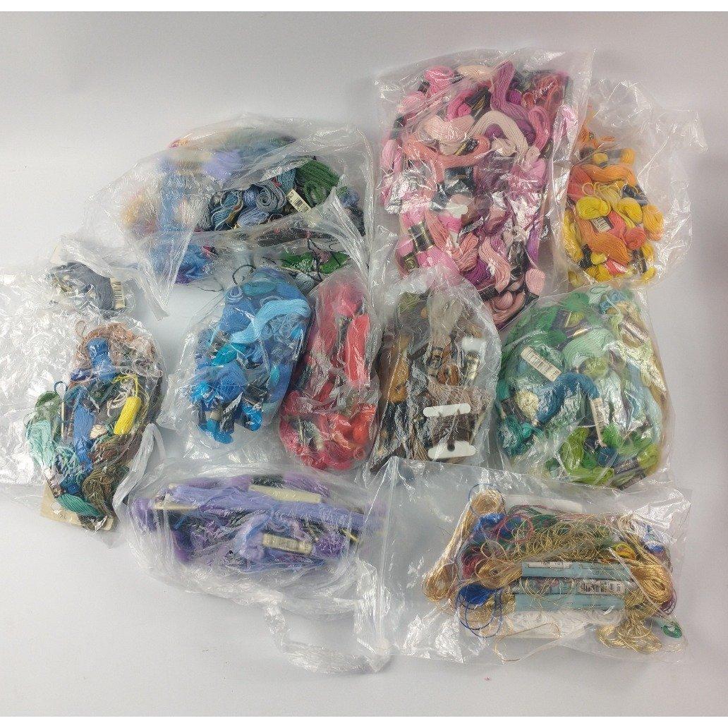 NICE QUALITY! Box containing cross stitch, embroidery and loose fabric