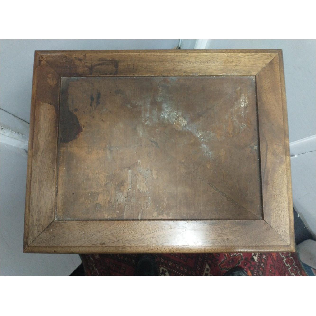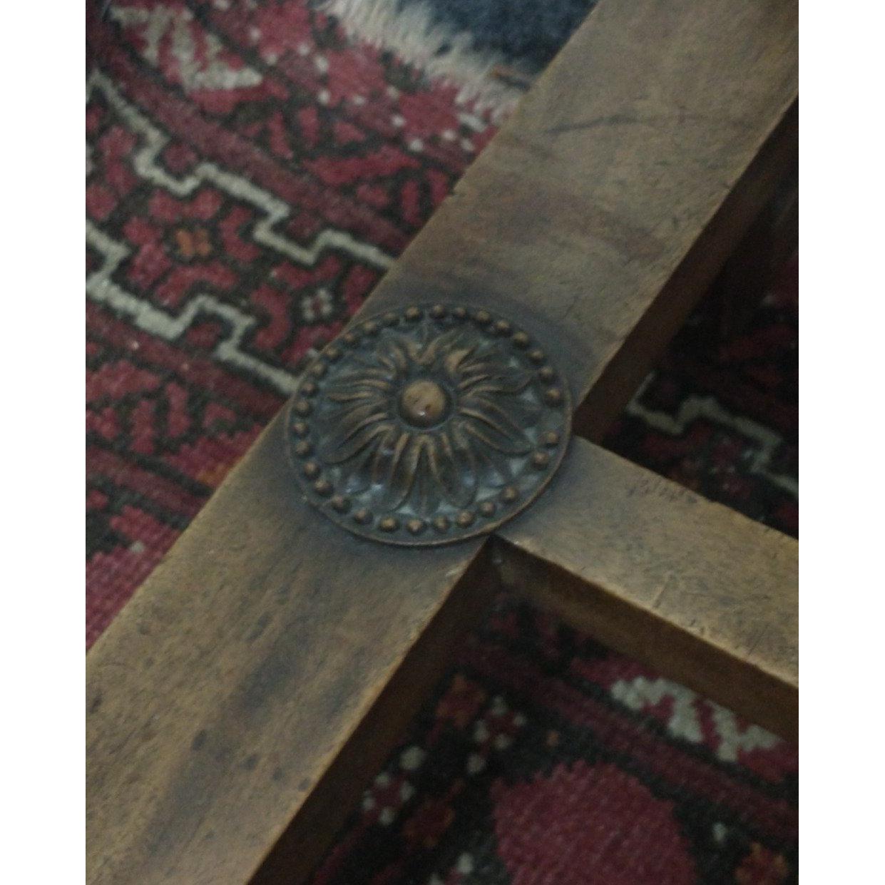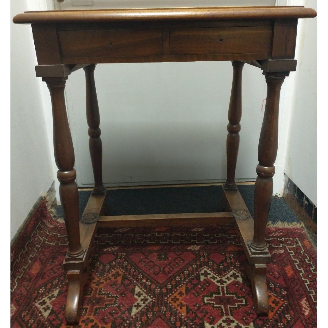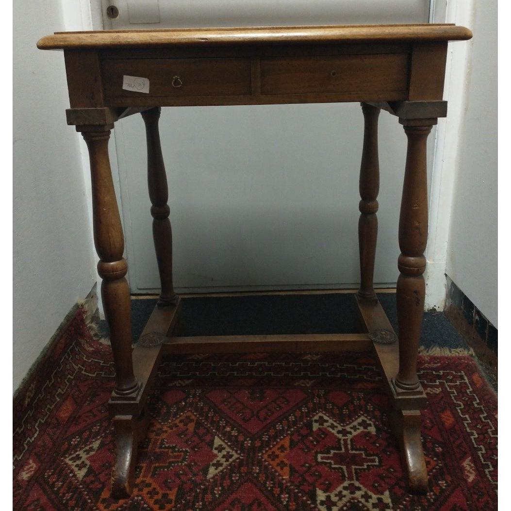 Wooden stretchered sewing/hall table with double sided drawers and flower head motifW: 60cm approx H: 74cm approx D: 59cm approx
