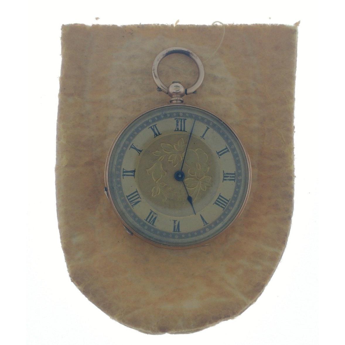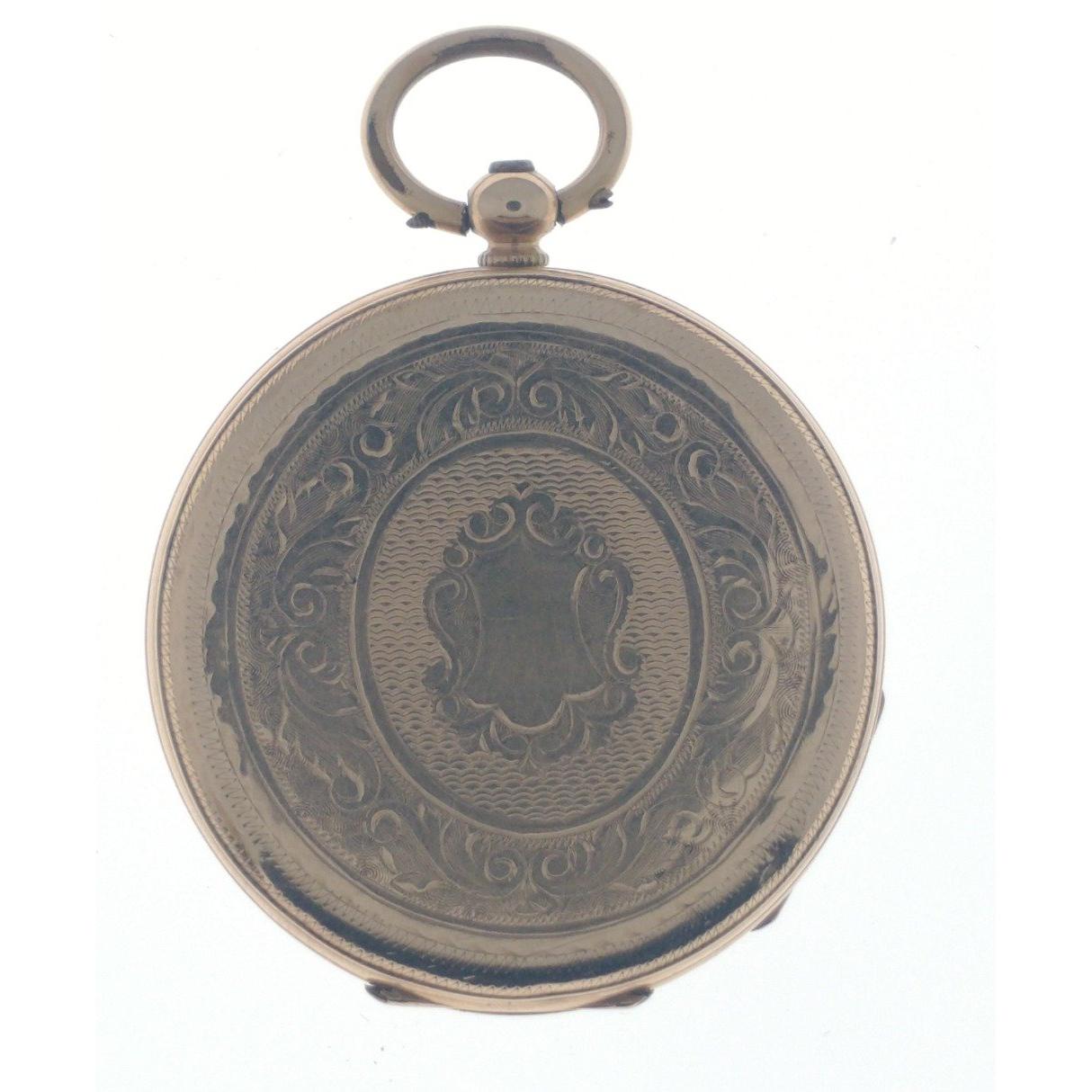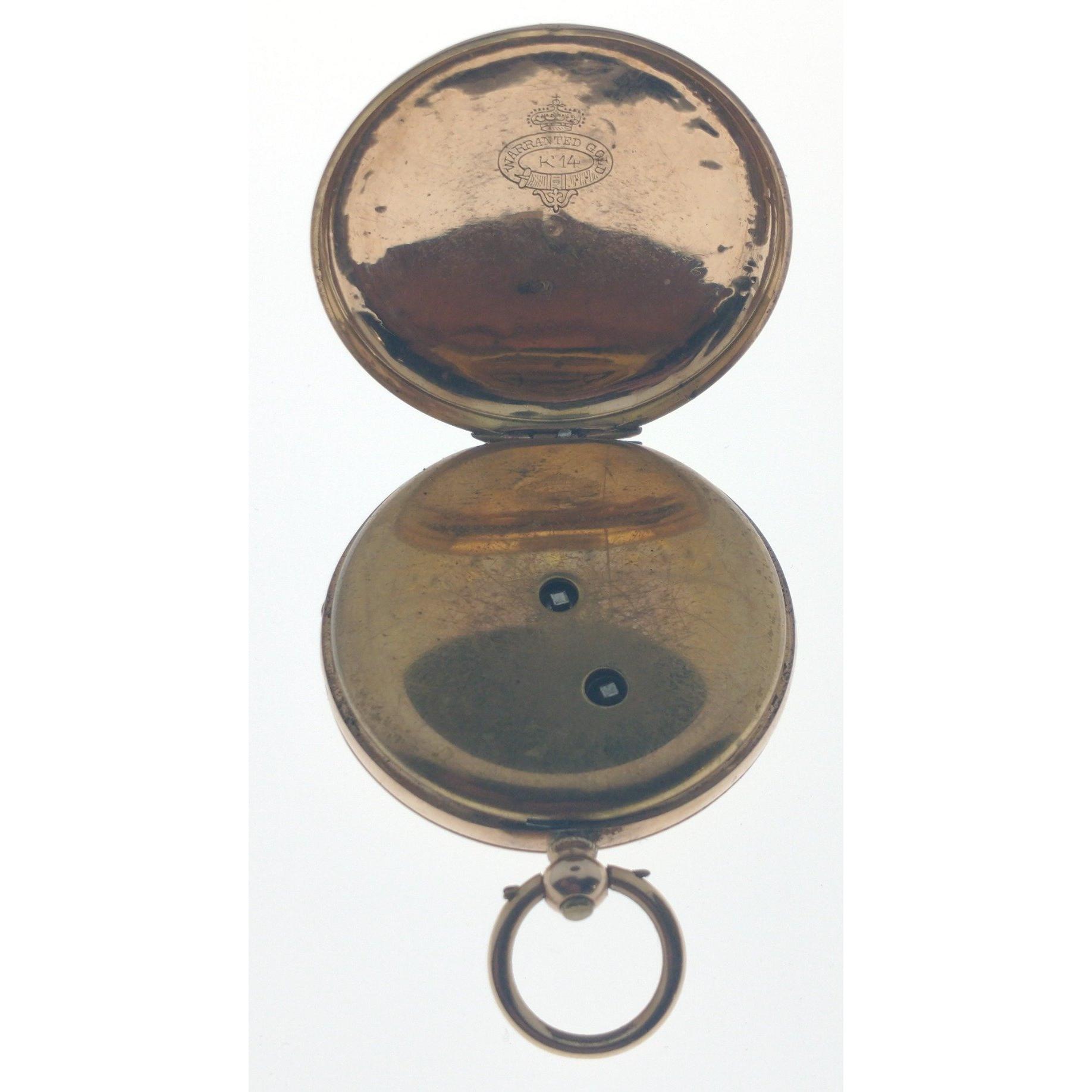 A WARRANTED 14 K stamped pocket watch with scroll design on the back plate - 30g grossGross weight approx 30gApprox 1 pieces